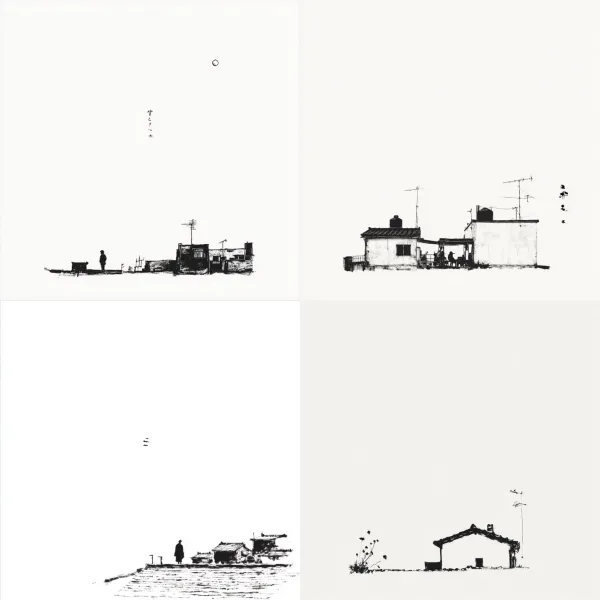 Silence Between Inks Unlock your potential with stilodex » Discipline:Plastic Arts, Guó huà. Visual style:Huā niǎo huà, Xiěyì. Application:decorative art. Stroke:calligraphic, spontaneous, discontinuous, organic. Palette:high contrast, black and white, visible canvas. Technique:india ink. Complexity:lowest. Emotion:introspection, poetry, Ma (間). Influence:zen, haiga, xieyi, sumi-e, shodō. Composition:centered, isolated, airy. Theme:contemplative.