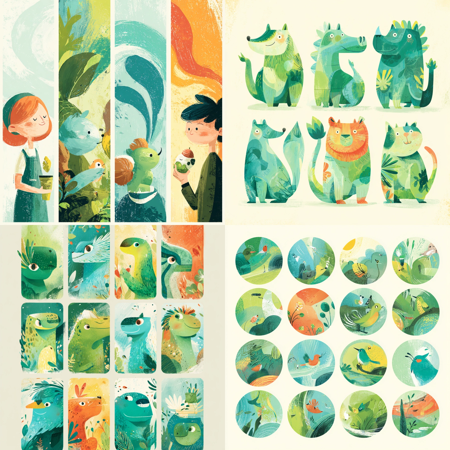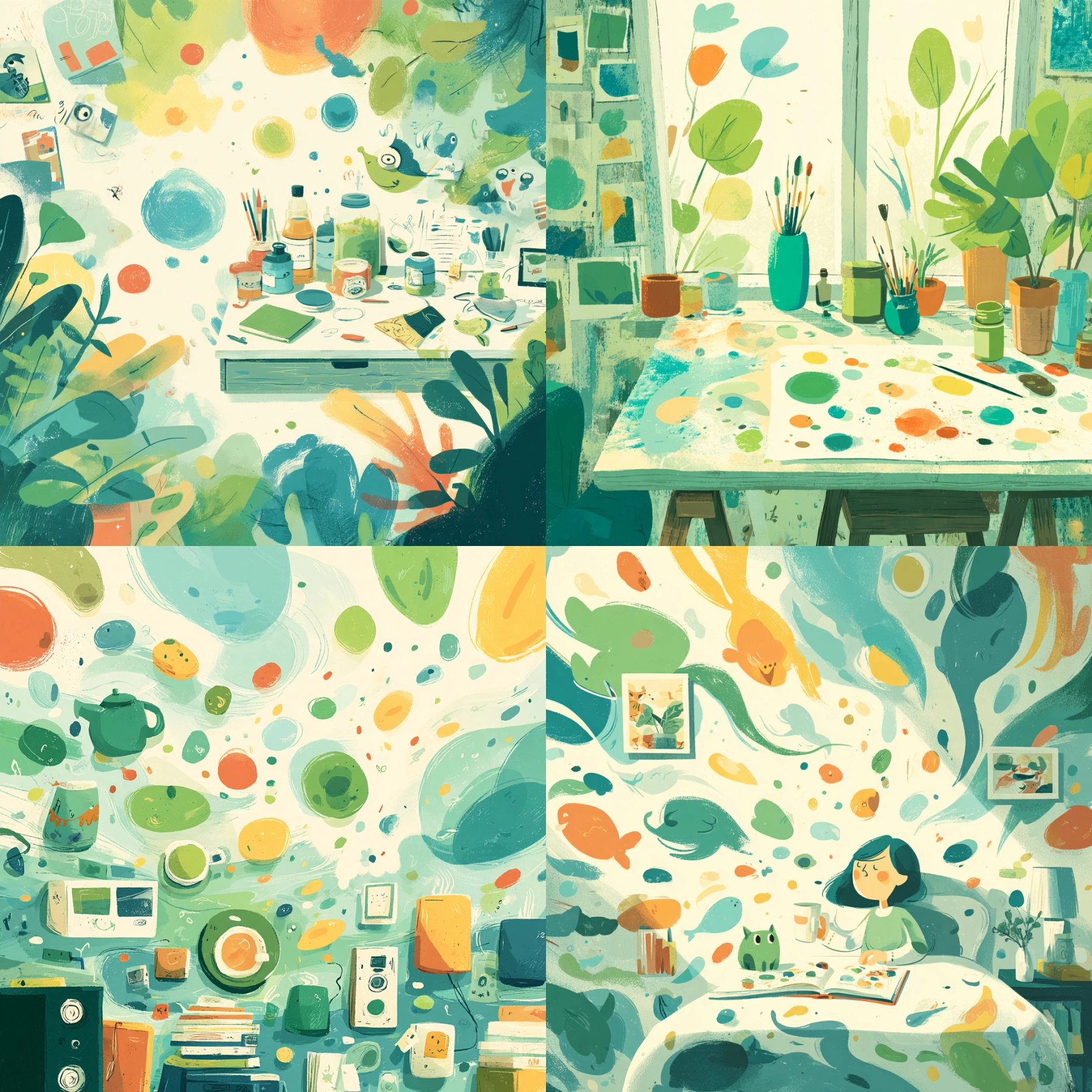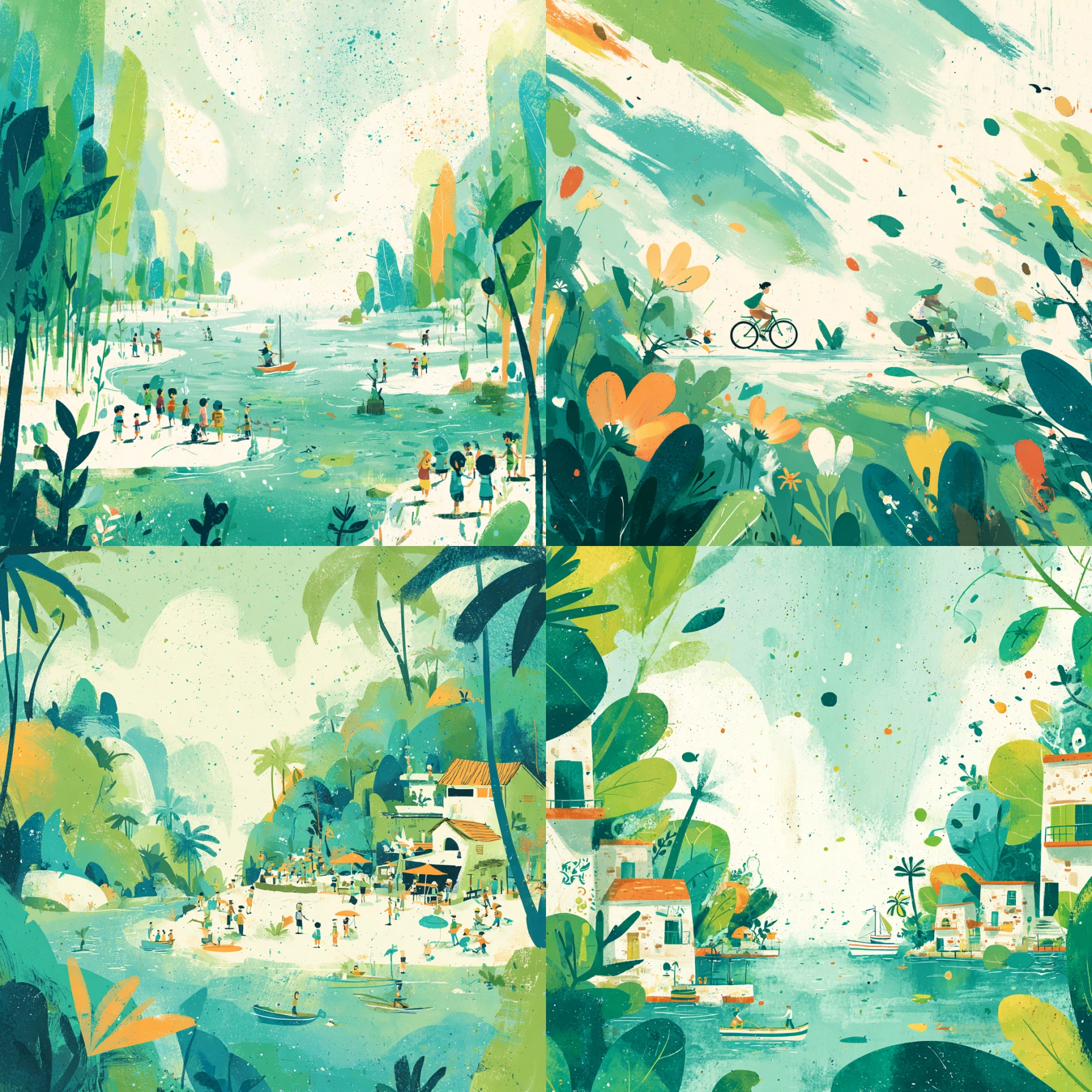 Verdant Breeze Unlock your potential with stilodex » Discipline:Illustration. Application:packaging. Stroke:organic, brushstroke, splatter. Palette:refreshing, textured, opposite, limited. Technique:gouache, digital. Complexity:low. Emotion:vacation, fun, summery. Composition:dynamic, superimposed layers. Theme:infantile.