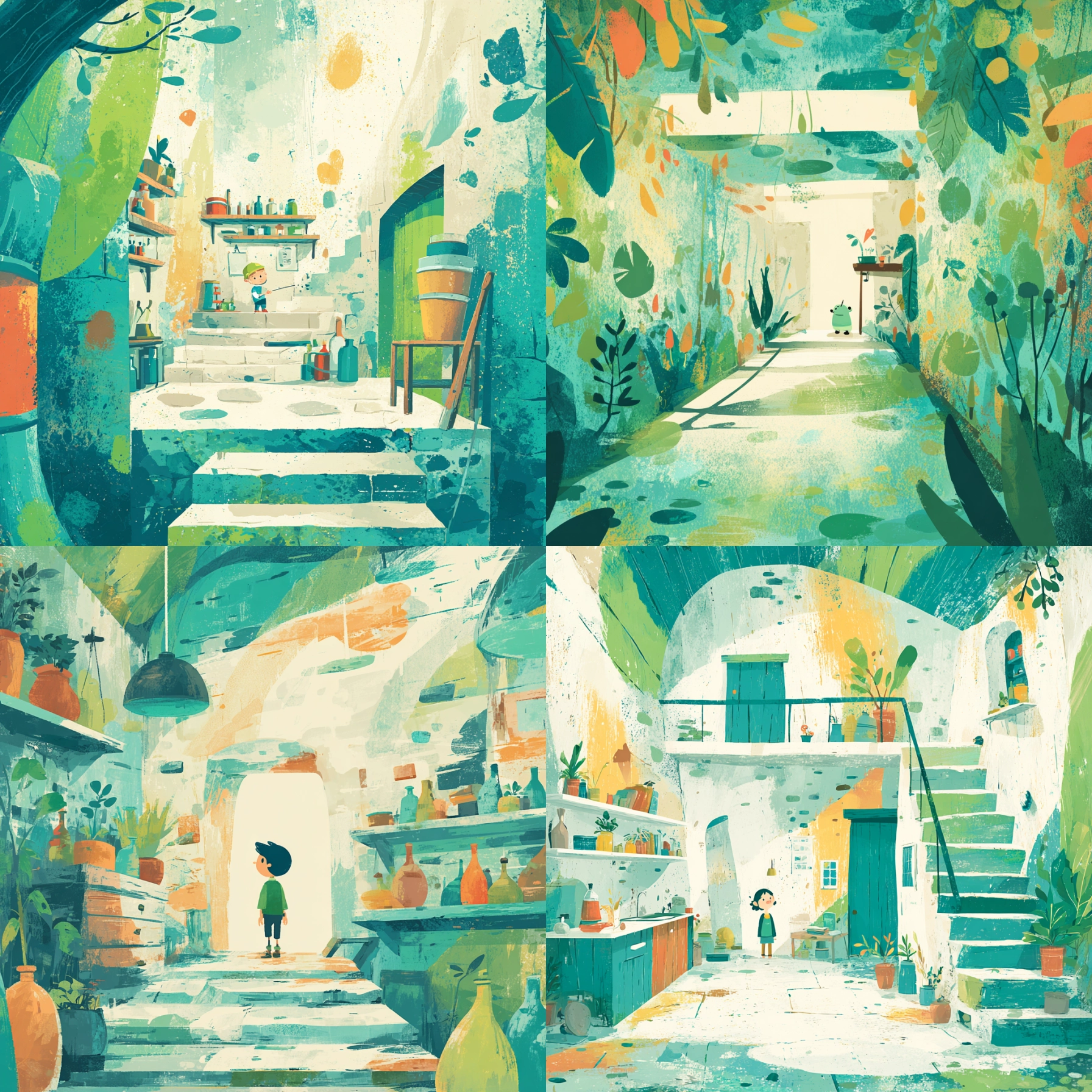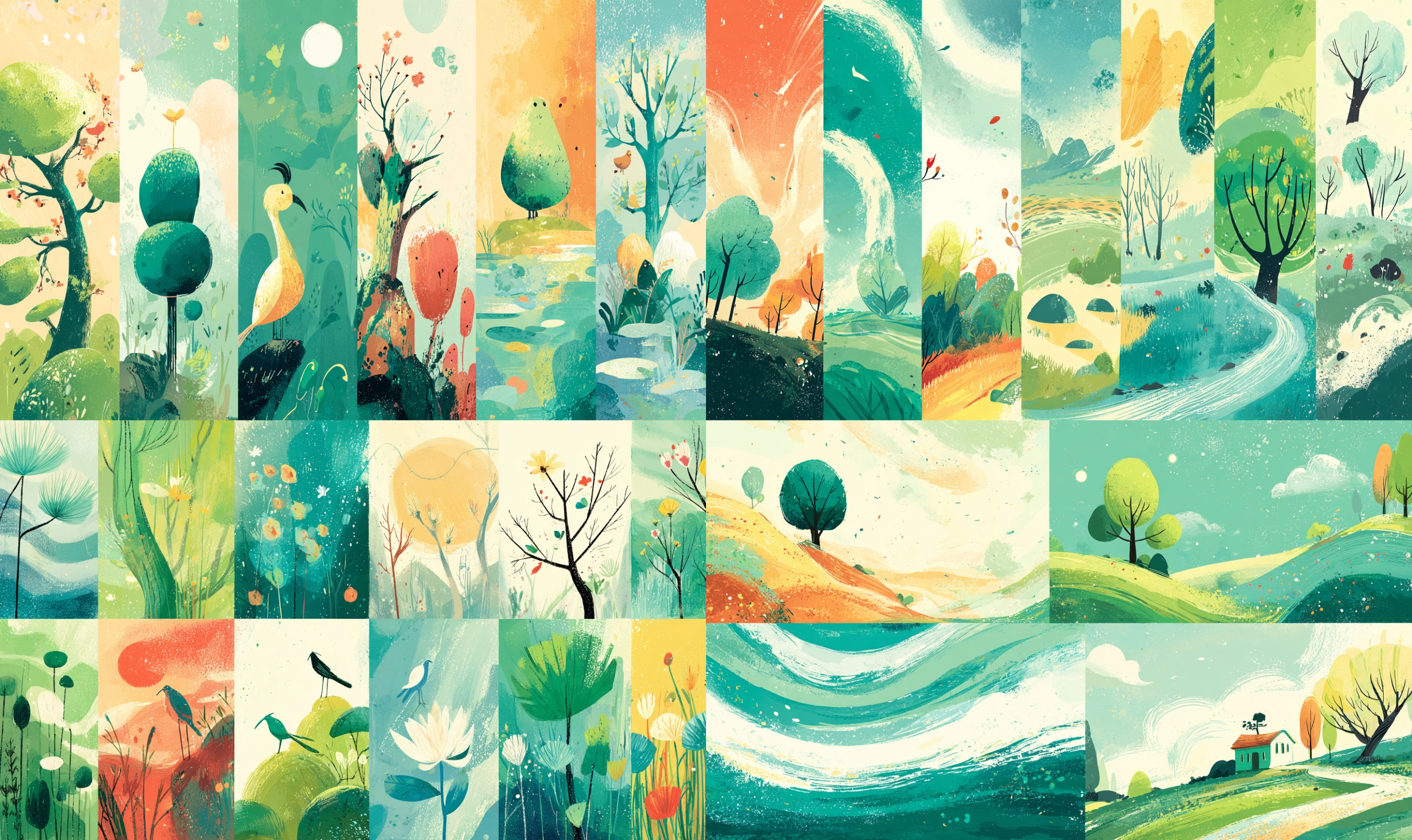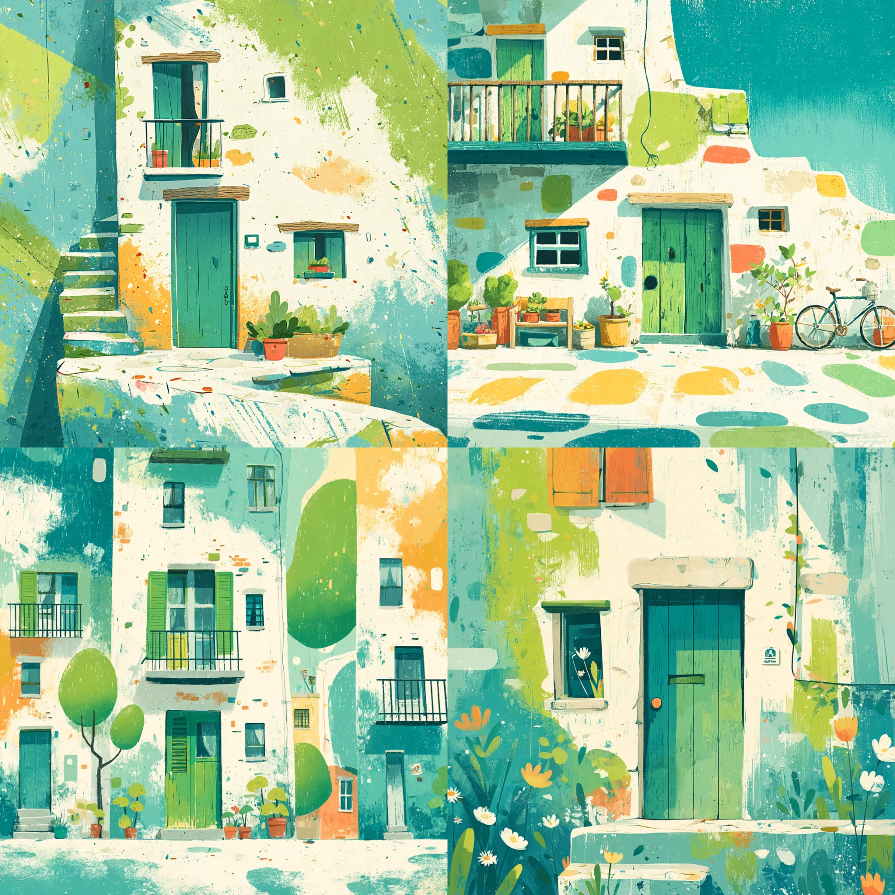 Verdant Breeze Unlock your potential with stilodex » Discipline:Illustration. Application:packaging. Stroke:organic, brushstroke, splatter. Palette:refreshing, textured, opposite, limited. Technique:gouache, digital. Complexity:low. Emotion:vacation, fun, summery. Composition:dynamic, superimposed layers. Theme:infantile.