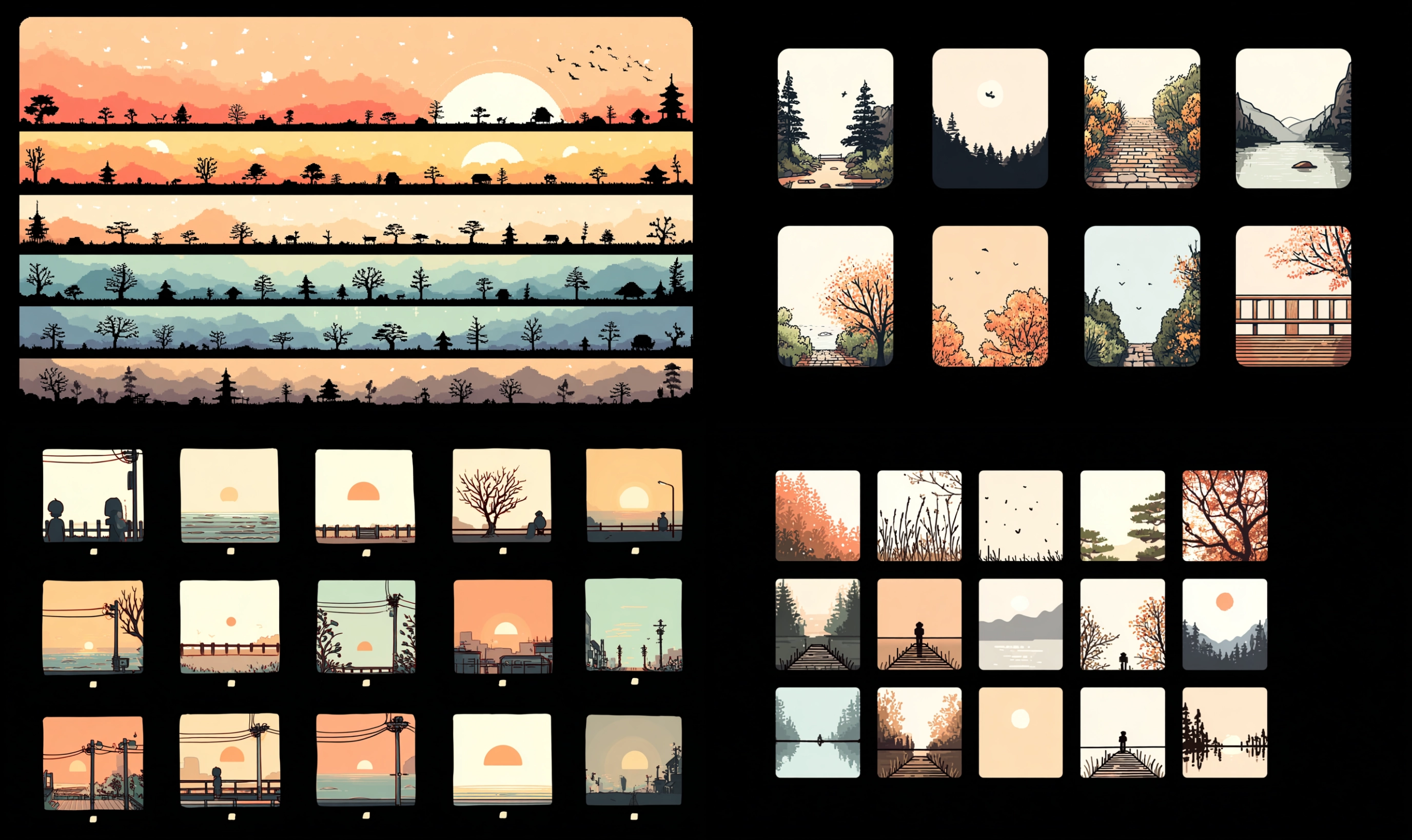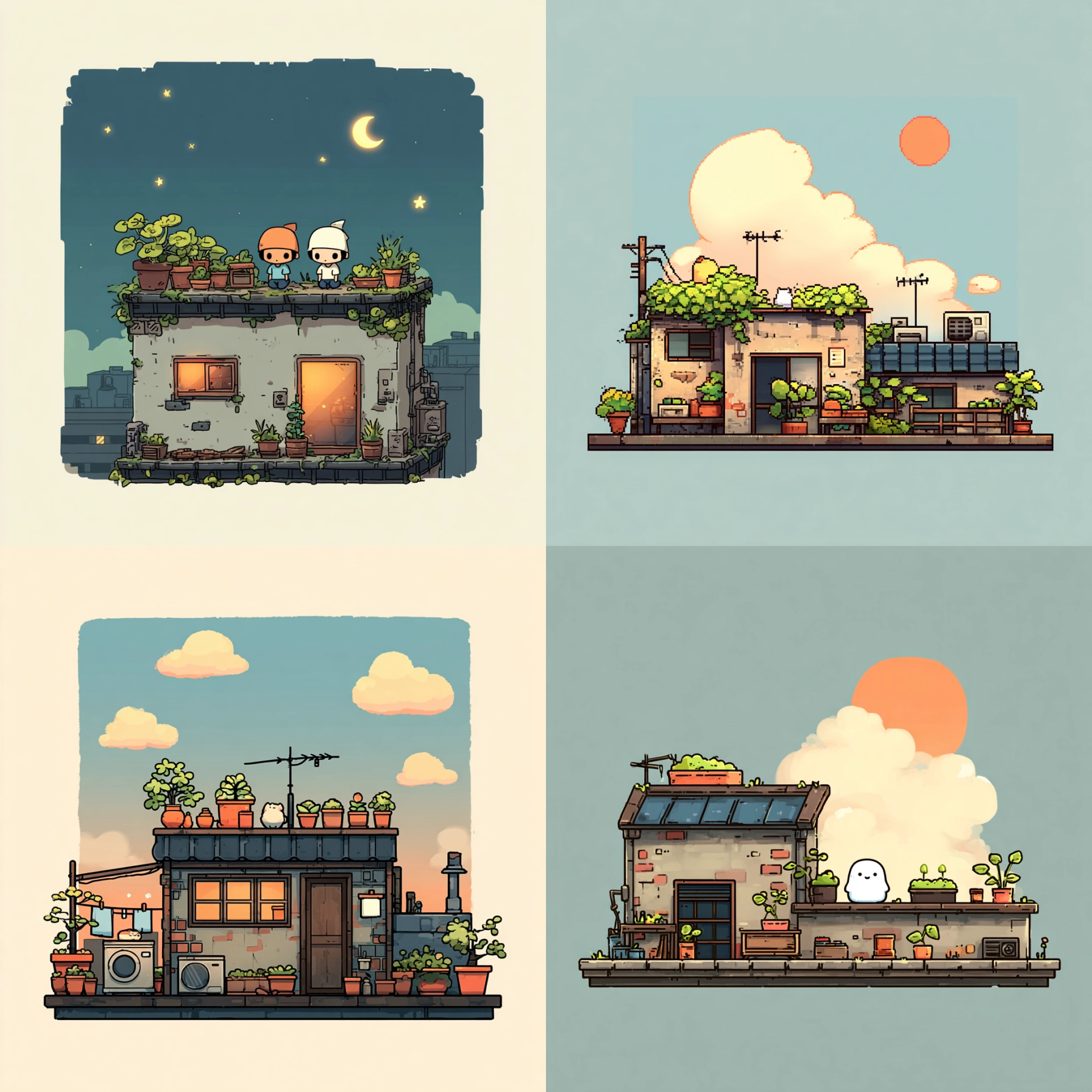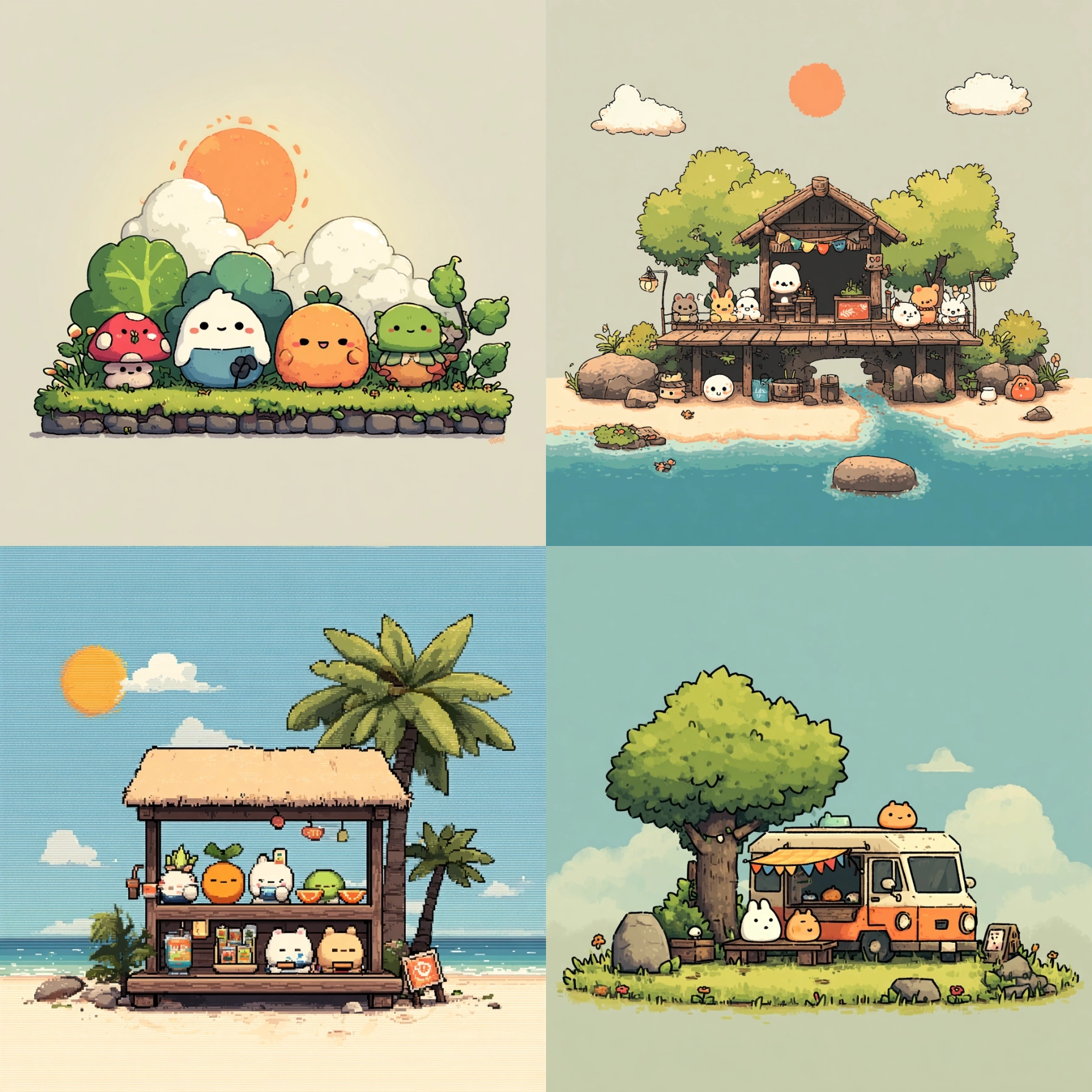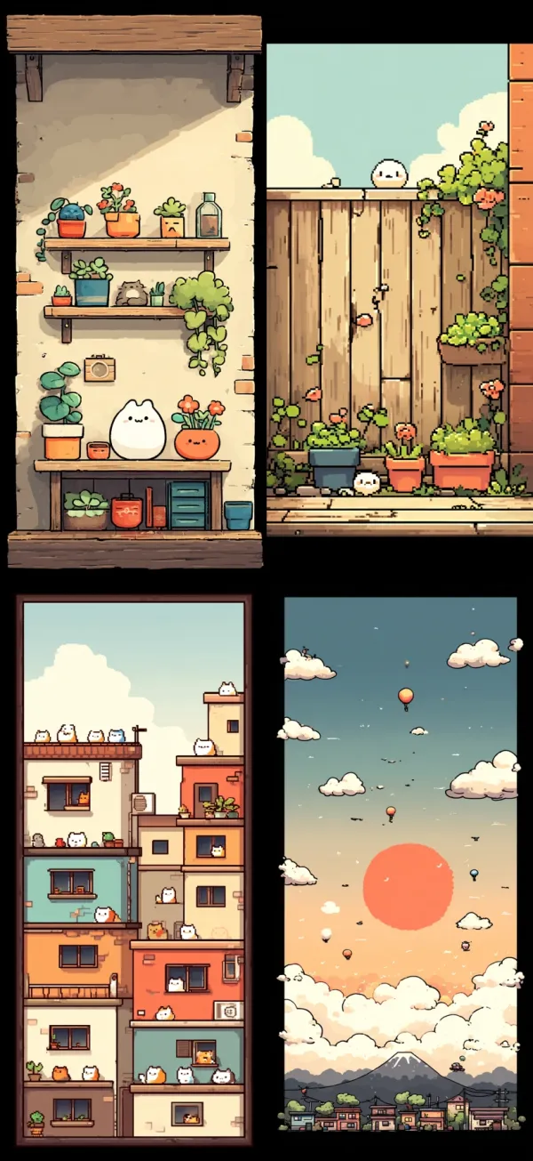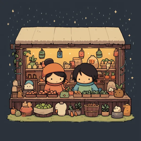 Chibi Acogedor Interactivo Desbloquea tu potencial con stilodex » Disciplina:Animación, Ilustración. Estilo visual:Wholesome Games. Aplicación:videojuegos. Trazo:irregular, constante, sencillo, perdido. Paleta:cálida, limitada, análoga. Técnica:digital, pixel art, vectores, sprites 2D, step shading, 32 bits. Complejidad:baja. Emoción:ternura, acogida, Ma (間), calma, tranquilidad, seguridad, inocencia, amistad, aventura, confianza. Influencia:sanrio, iyashikei, calm tech, stardew valley, pokémon esmeralda. Composición:aislada, diorama. Temática:simulación agrícola, ruralidad. Textura:pixelada.