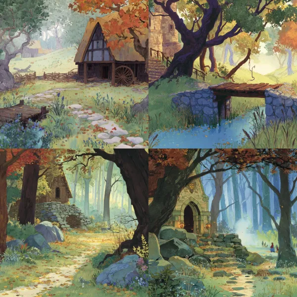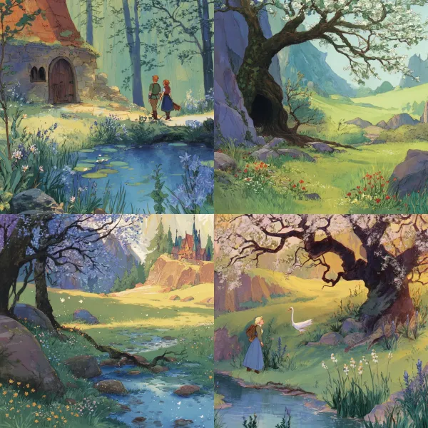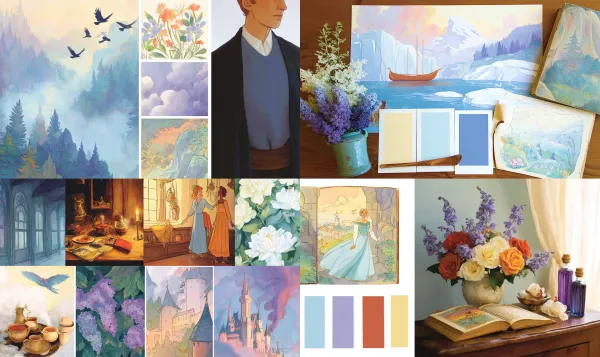Fábula Escenográfica Neorromántica Desbloquea tu potencial con stilodex » Disciplina:Ilustración. Estilo visual:Cuentos de hadas. Aplicación:libro infantil. Trazo:contorno delgado, variable. Paleta:desvaída, compleja. Técnica:gouache, matte painting. Complejidad:alta. Emoción:nostalgia, inocencia. Influencia:cuentos ilustrados. Composición:profundidad.