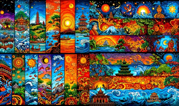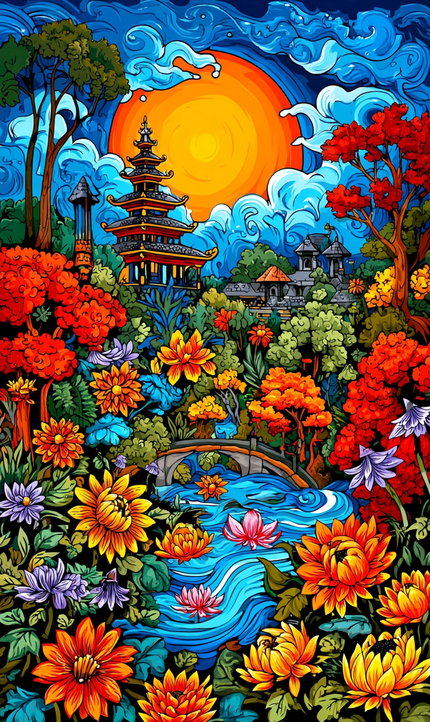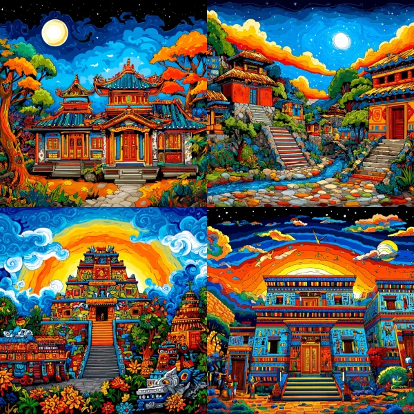 Folclore Universal Colorido Desbloquea tu potencial con stilodex » Disciplina:Ilustración. Aplicación:material promocional. Trazo:sólido, irregular, variable, nítido. Paleta:colorida, saturada, básica. Técnica:acrílico. Complejidad:alta. Emoción:festividad, turismo, vacaciones. Composición:simétrica, autocontenida, geométrica. Temática:cosmovisión, folclore.