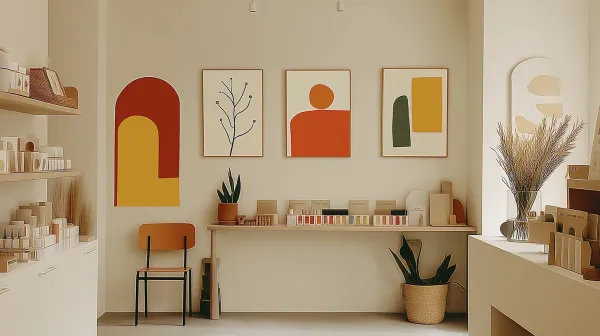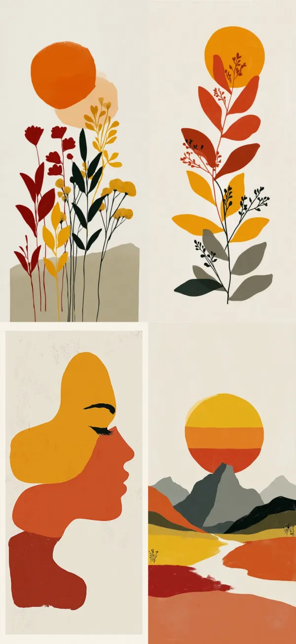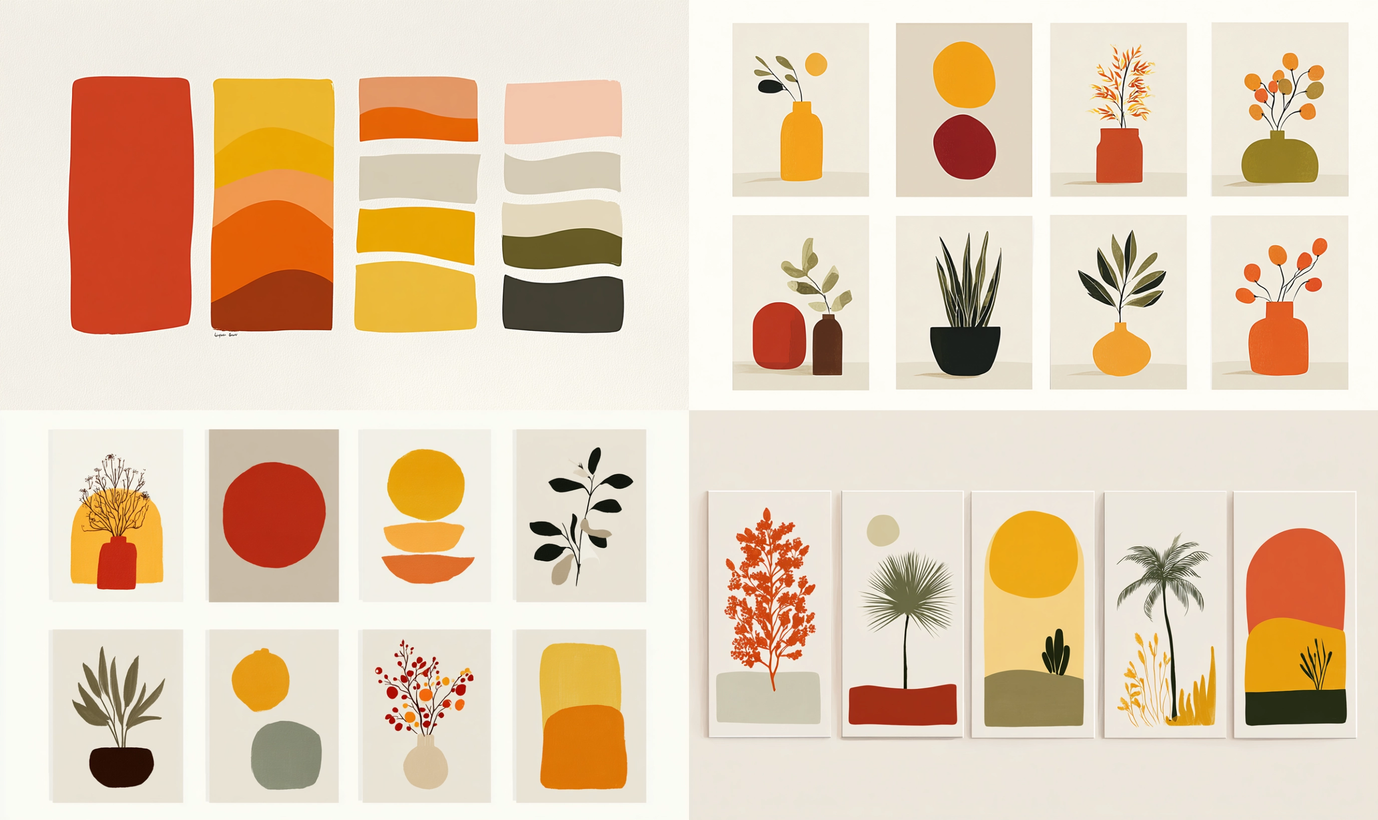 Gouache Boho Modular Desbloquea tu potencial con stilodex » Disciplina:Artes plásticas, Interiorismo y decoración. Estilo visual:Arte Orgánico. Aplicación:arte decorativo. Trazo:recorte, sólido. Paleta:cálida, limitada, tinta plana. Técnica:gouache, serigrafía. Complejidad:bajísima. Emoción:tranquilidad, descanso, meditación, zen, Ma (間). Influencia:mid-century modern, boho, minimalismo, wabi-sabi. Composición:geométrica, plana, aislada.