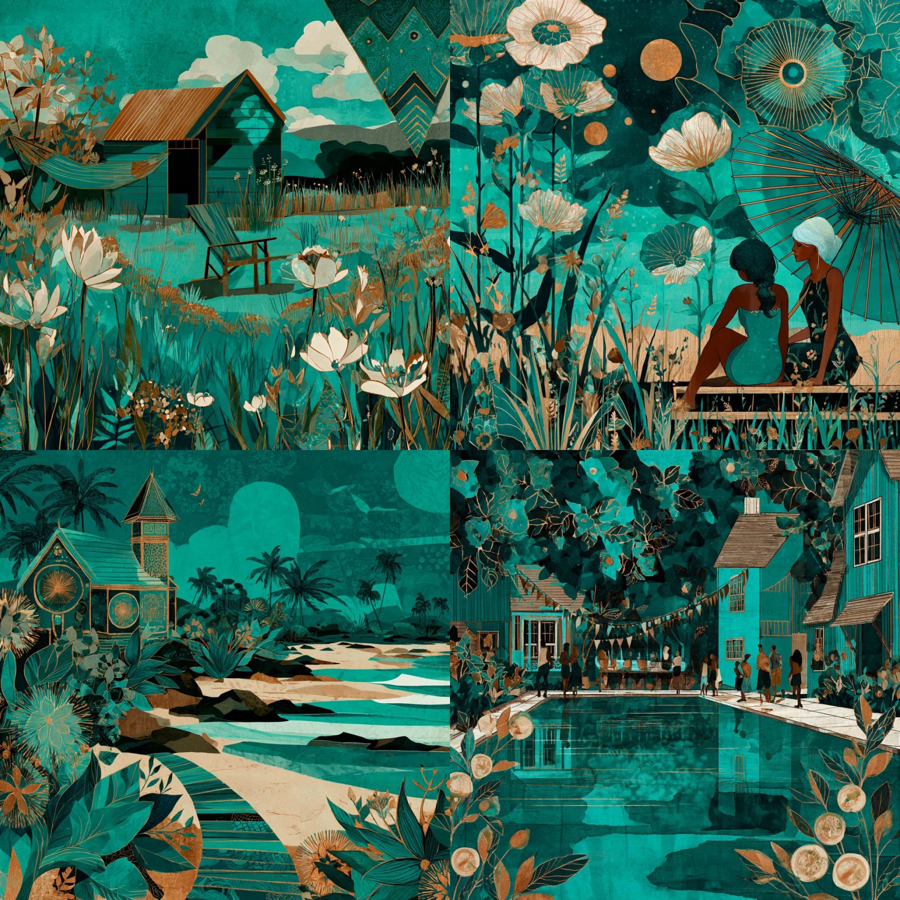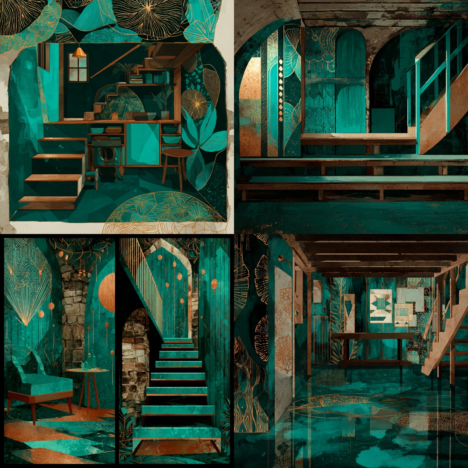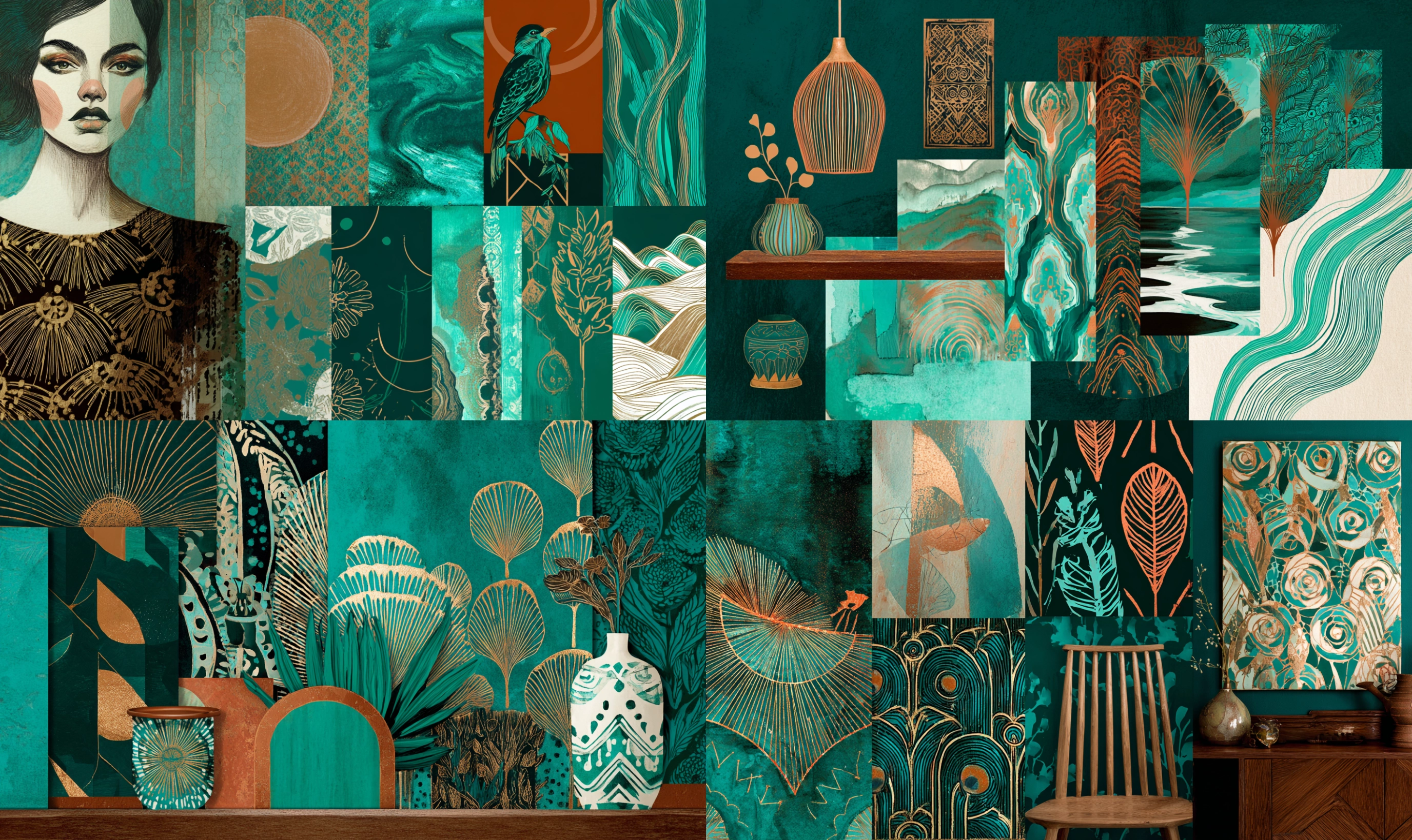 Neo Deco Turquesa Desbloquea tu potencial con stilodex » Disciplina:Interiorismo y decoración. Estilo visual:Art Déco Revival. Aplicación:artesanías, papelería, diseño de interiores, diseño decorativo, hostelería. Paleta:limitada. Técnica:pan de oro. Complejidad:alta. Emoción:exclusividad, lujo. Influencia:secesión de viena, cloisonné.