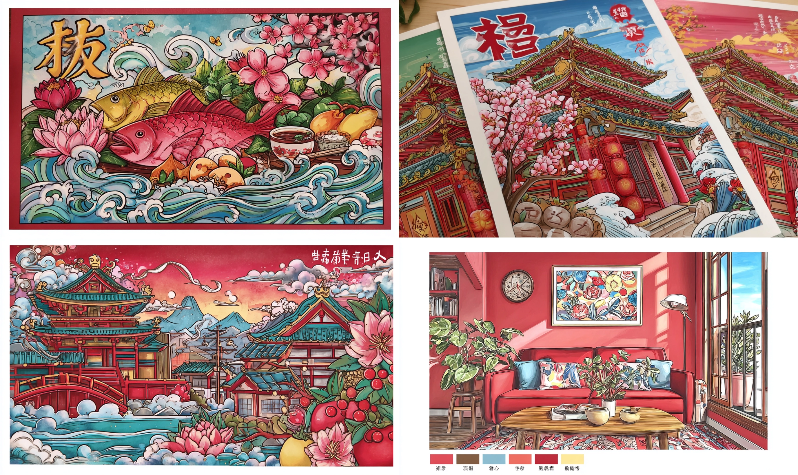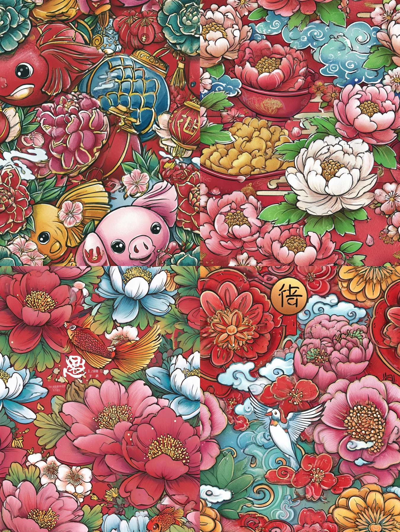 Resurrección del Nianhua Desbloquea tu potencial con stilodex » Disciplina:Ilustración. Aplicación:material promocional. Trazo:irregular, variable, múltiple, nítido. Paleta:básica, diluida, canvas visible. Técnica:gouache, xilografía. Complejidad:media. Emoción:alegría, prosperidad, júbilo, fortuna. Influencia:festividades chinas. Composición:autocontenida. Temática:año nuevo chino, danza del león, folclore.