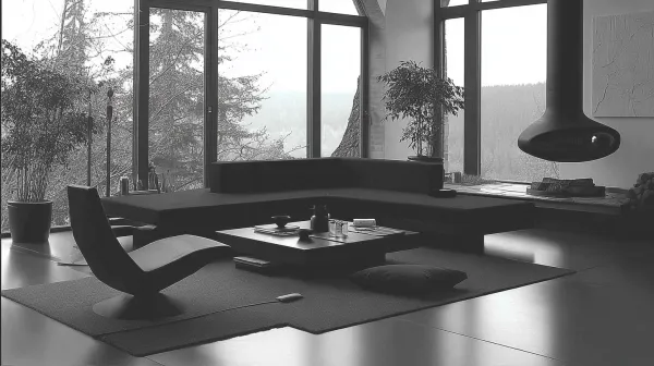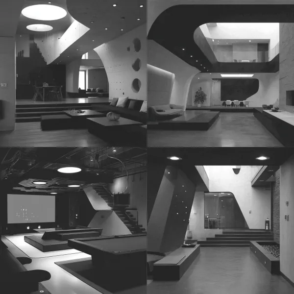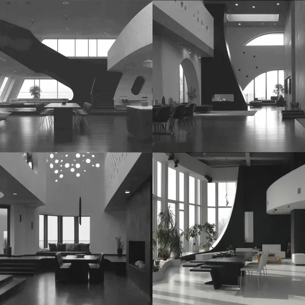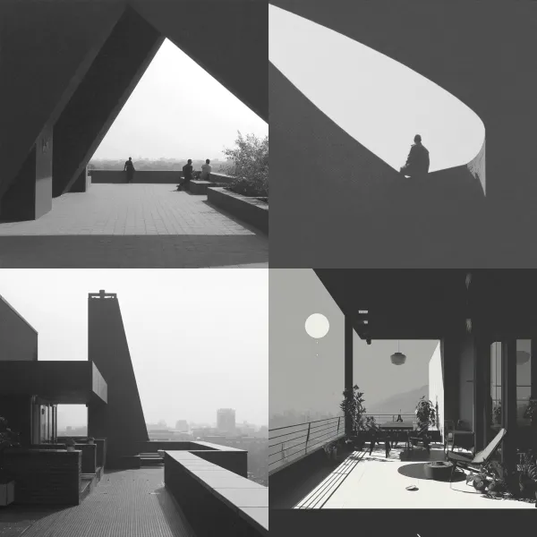 Brutal Shadow Unlock your potential with stilodex » Discipline:Architecture, Interior design and decoration. Visual style:Monumental Brutalism. Stroke:volumetric, sculptural, hieratical. Palette:high contrast, grayscale. Technique:exposed concrete. Complexity:low. Emotion:coldness, sobriety, scarcity. Influence:japanese metabolism, scandinavian minimalism, modern high-tech, late bauhaus. Composition:wide, modular, geometric, depth. Theme:high-end housing.