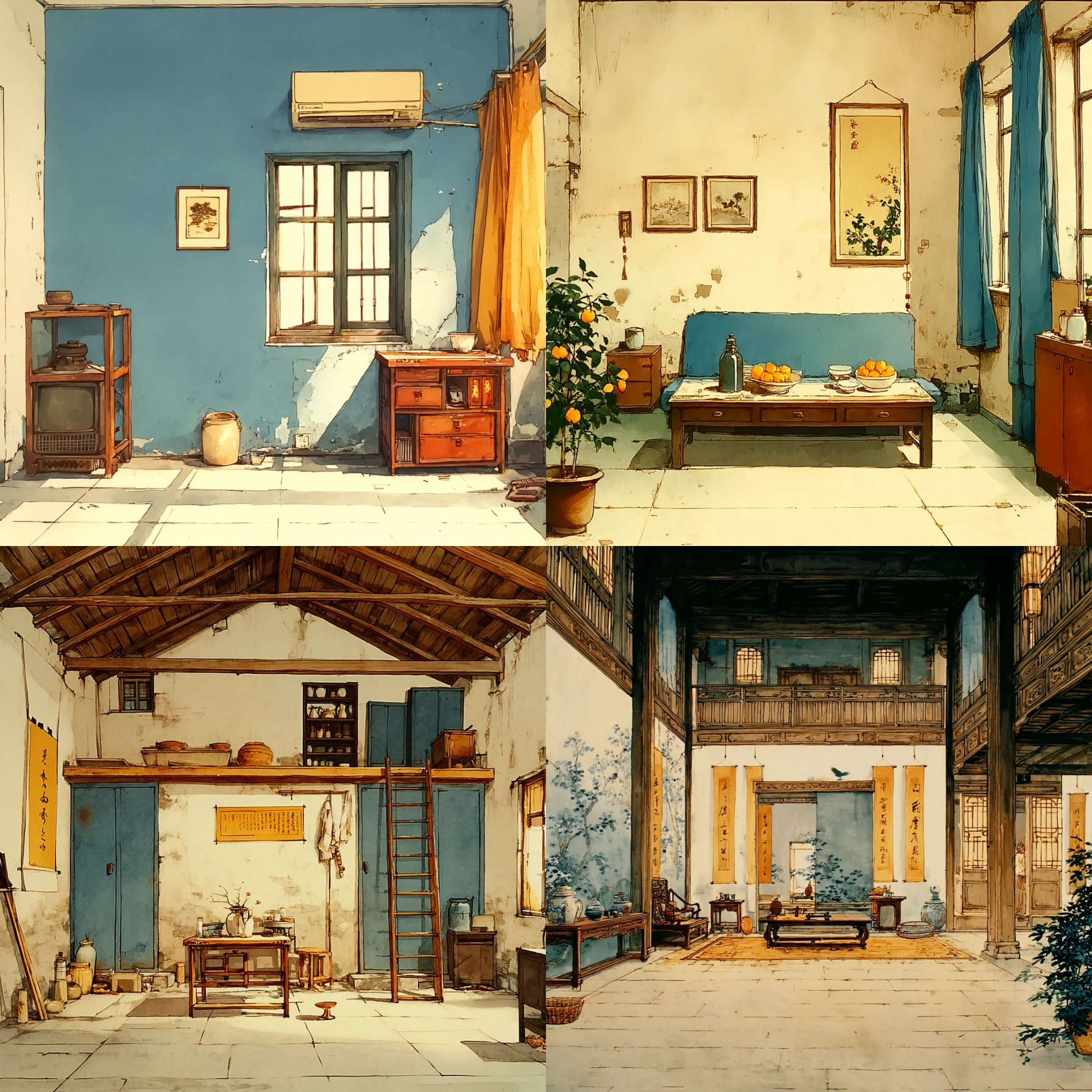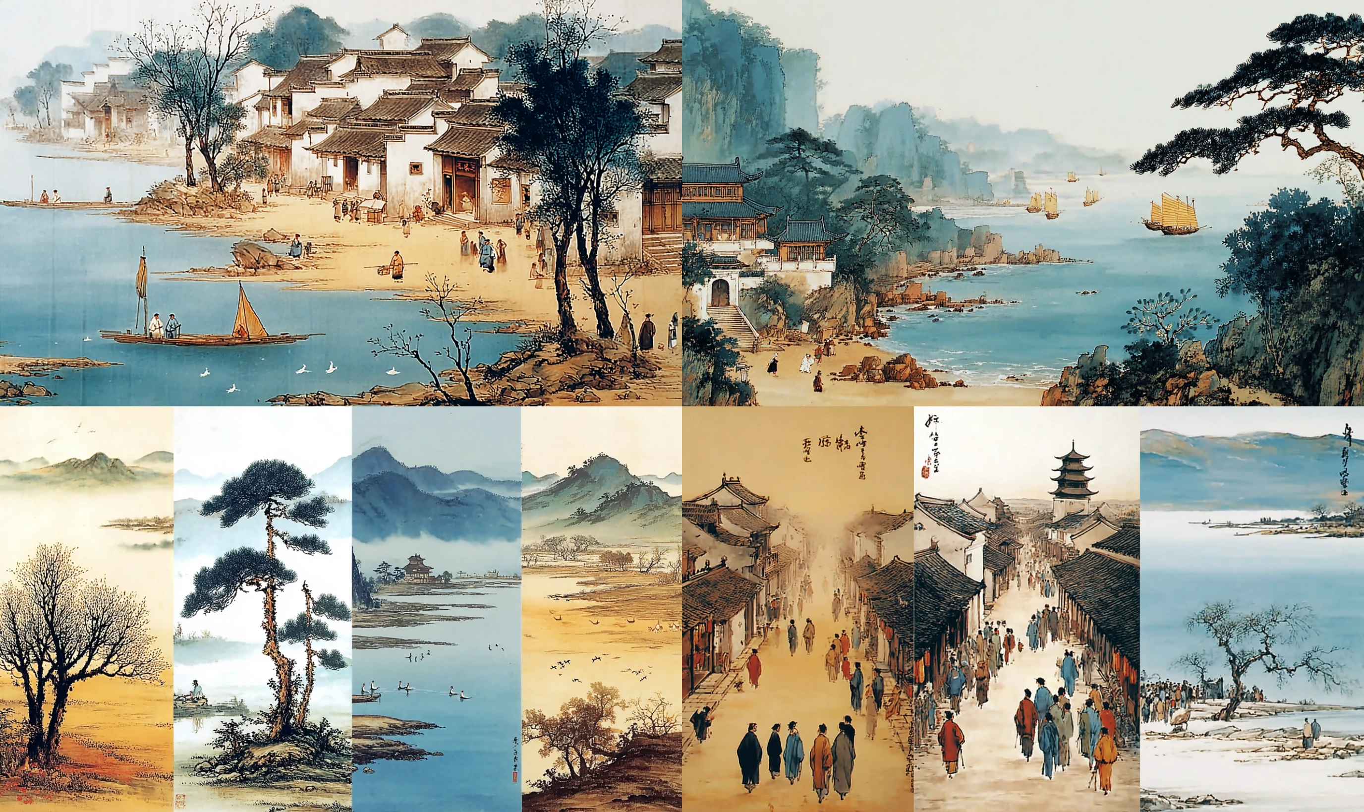 Low-def China Ink Unlock your potential with stilodex » Discipline:Guó huà. Visual style:Xī Huà. Application:visdev. Stroke:irregular, variable, discontinuous, multiple. Palette:color grading. Technique:india ink, gouache, weathering. Complexity:high. Composition:depth.