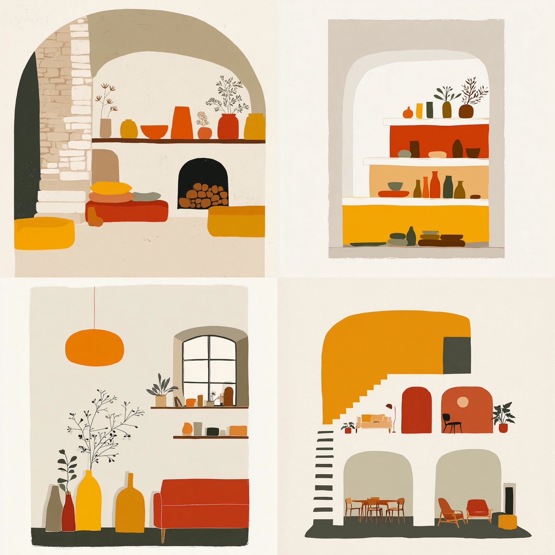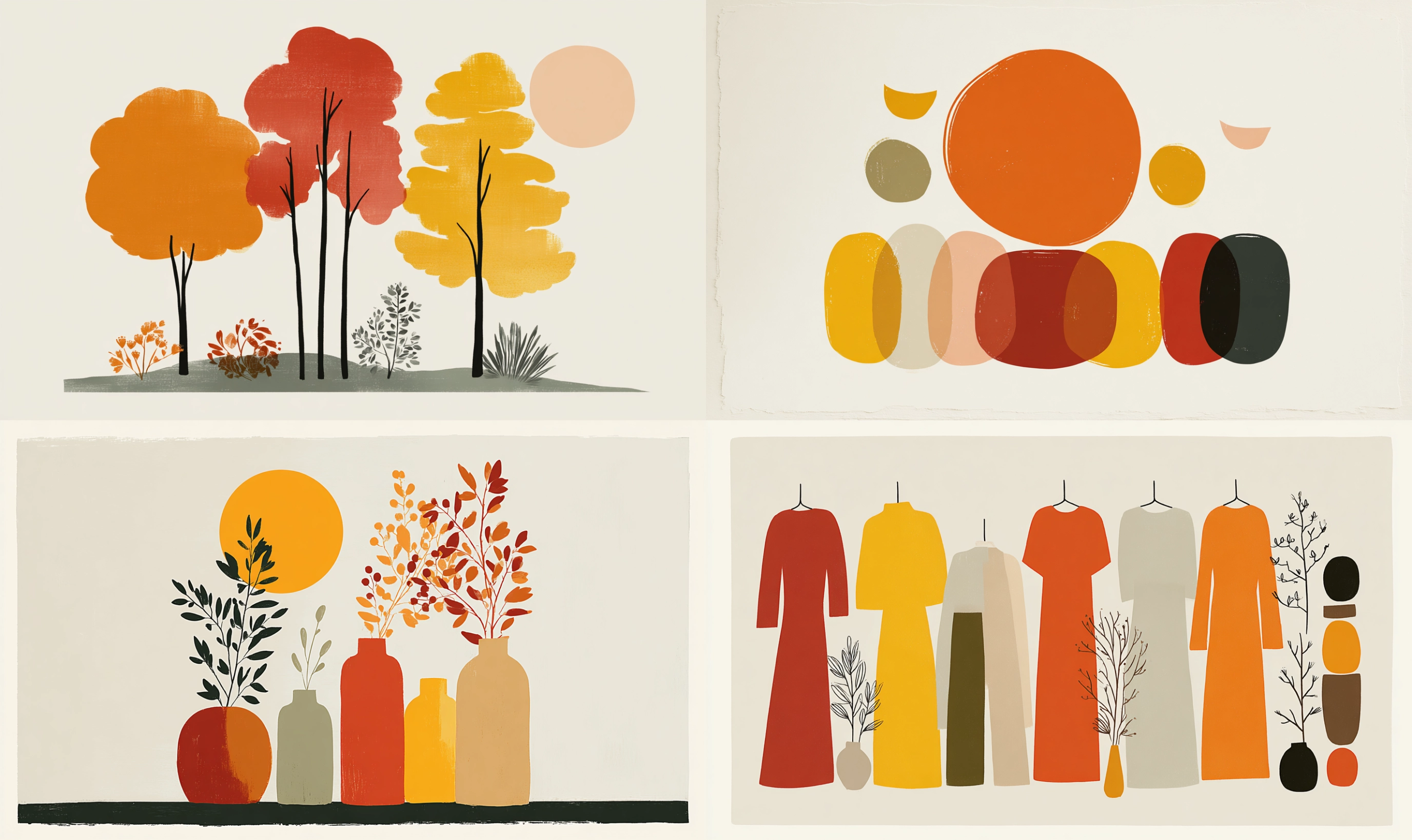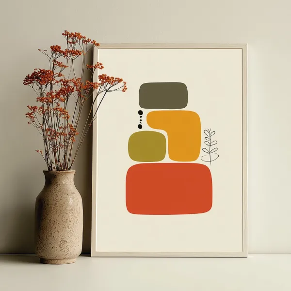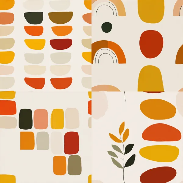 Modular Boho Gouache Unlock your potential with stilodex » Discipline:Plastic Arts, Interior design and decoration. Visual style:Organic Art. Application:decorative art. Stroke:cut outs, solid. Palette:warm, limited, spot color. Technique:gouache, screen printing. Complexity:lowest. Emotion:tranquillity, rest, meditation, zen, Ma (間). Influence:mid-century modern, boho, minimalism, wabi-sabi. Composition:geometric, flat, isolated.