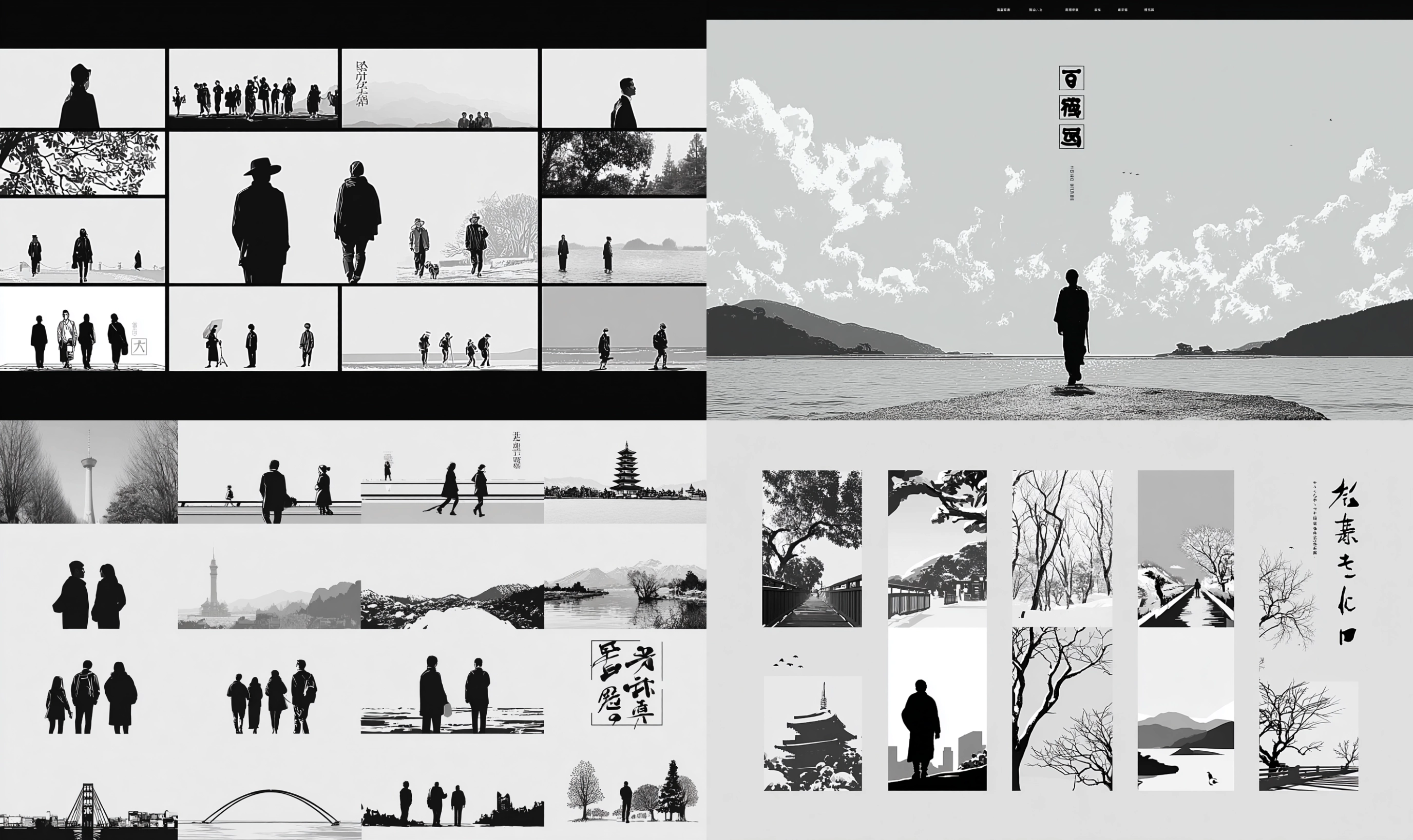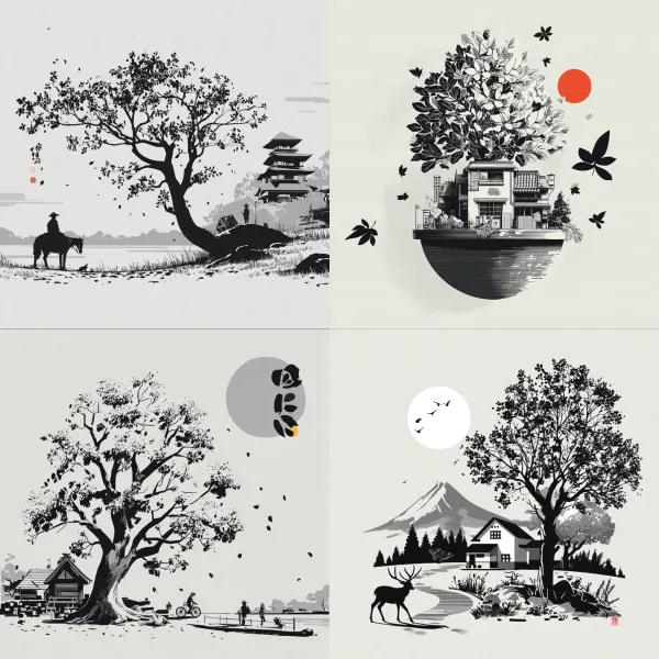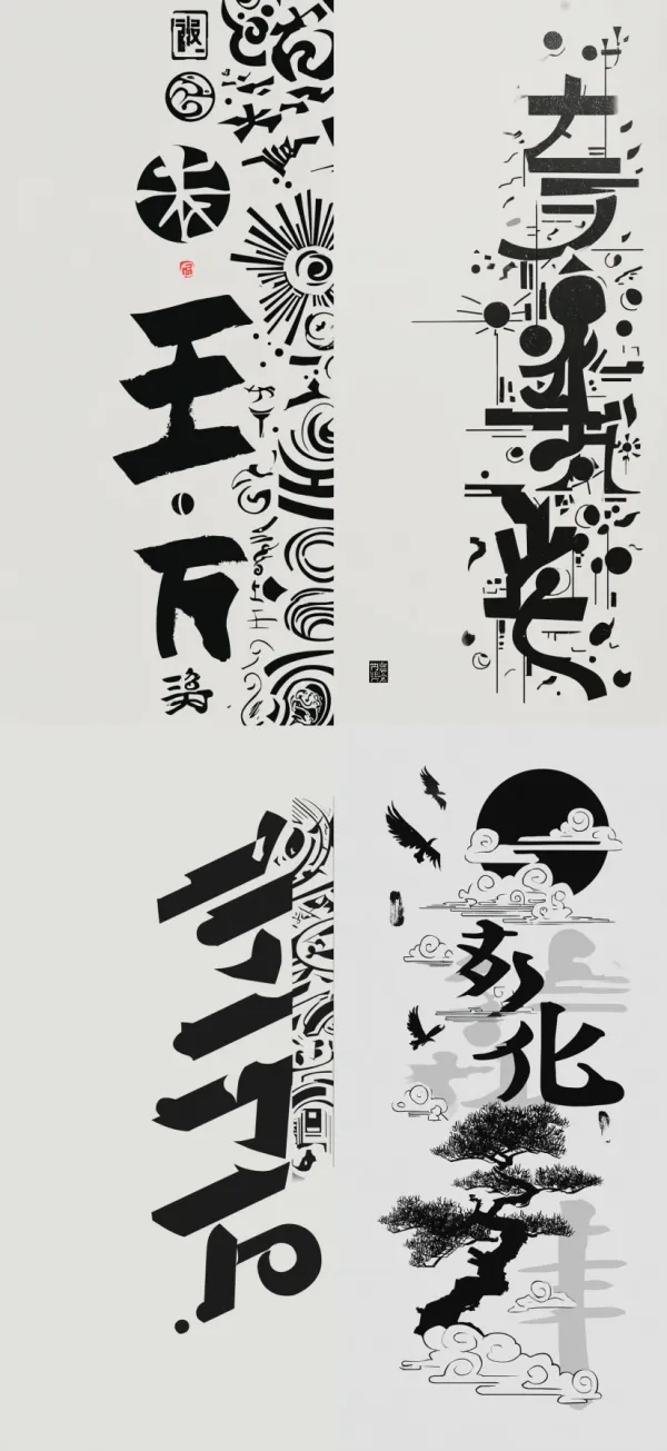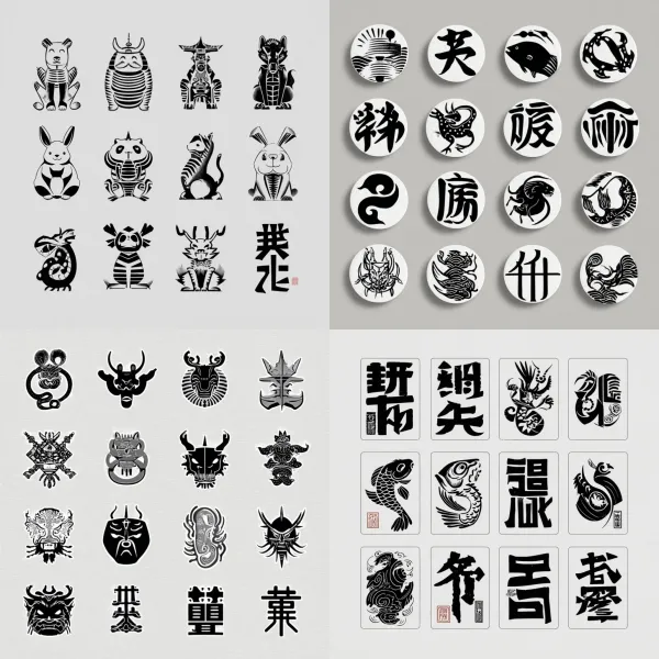 Oriental Monochrome Vector Unlock your potential with stilodex » Discipline:Illustration. Visual style:shodō vectors, Xī Huà. Application:print, tattoo, graphic arts. Stroke:sharp, solid, flat, hieratical, calligraphic, variable. Palette:high contrast, grayscale. Technique:screen printing. Complexity:low. Emotion:symbolic, mono no aware. Influence:japanese calligraphy. Composition:isolated.