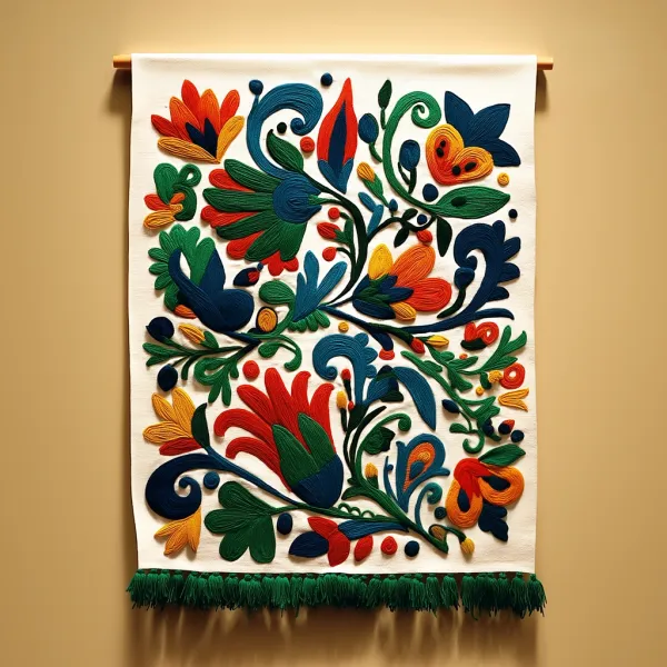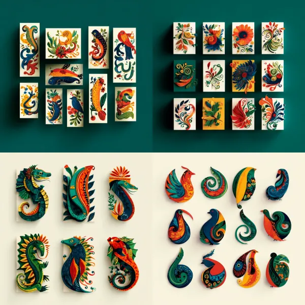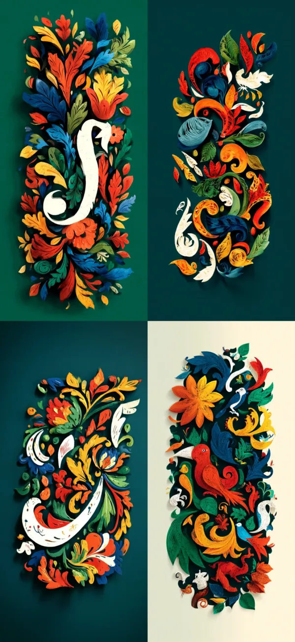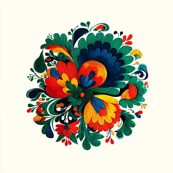 Ornamental Folk Filigree Unlock your potential with stilodex » Discipline:Crafts. Application:craftsmanship. Stroke:organic. Palette:colorful, basic, saturated, visible canvas. Technique:quilling, papercut, embroidery. Complexity:high. Emotion:happiness, authenticity, festivity. Influence:kalocsai. Composition:isolated, centered. Theme:folklore.