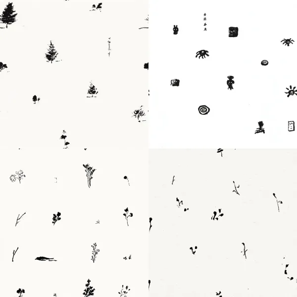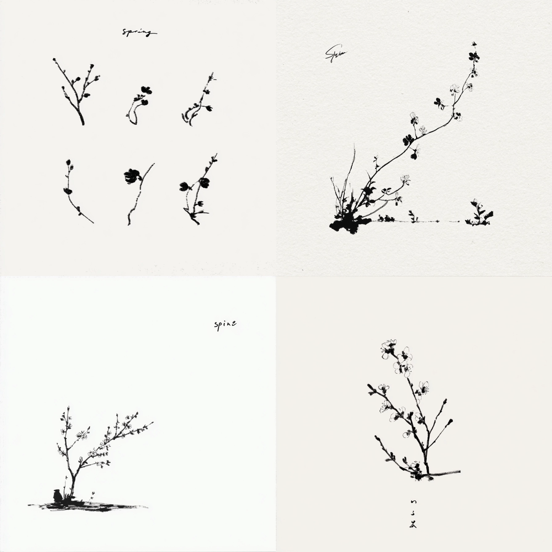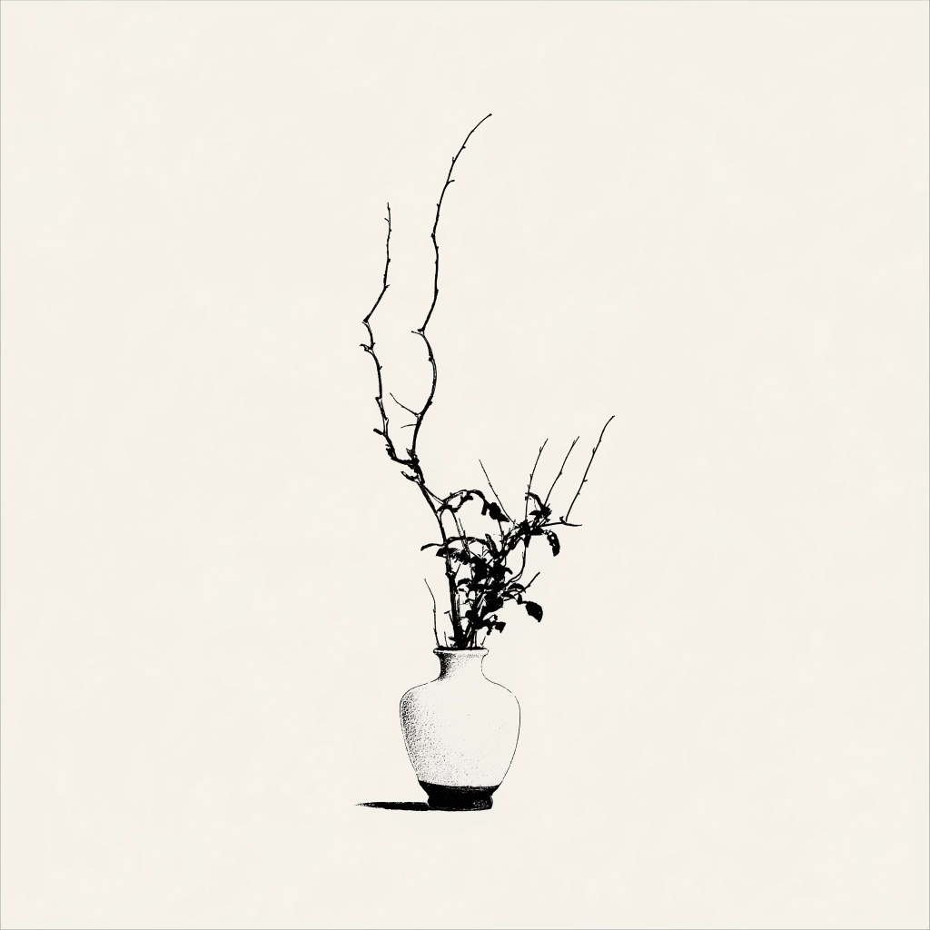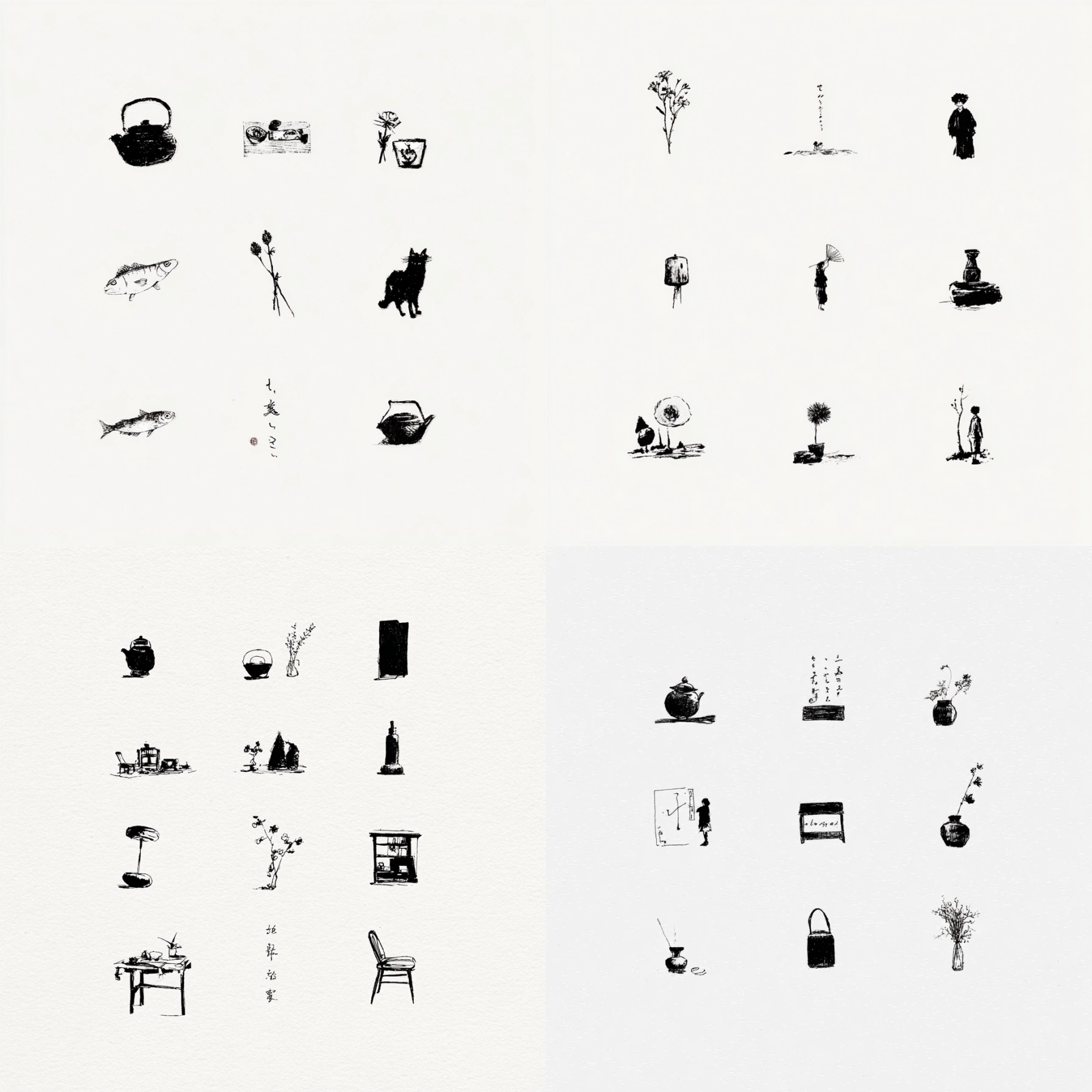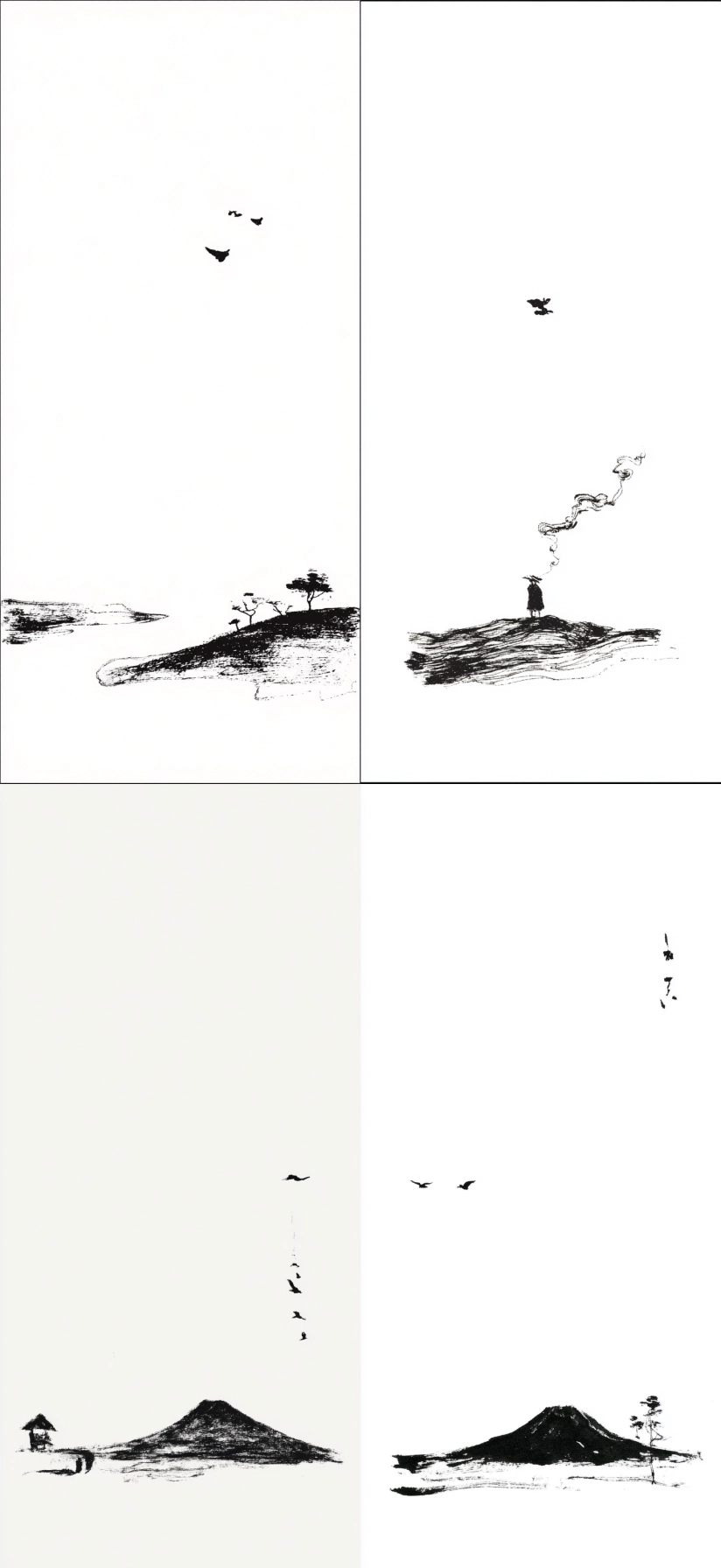 Silence Between Inks Unlock your potential with stilodex » Discipline:Plastic Arts, Guó huà. Visual style:Huā niǎo huà, Xiěyì. Application:decorative art. Stroke:calligraphic, spontaneous, discontinuous, organic. Palette:high contrast, black and white, visible canvas. Technique:india ink. Complexity:lowest. Emotion:introspection, poetry, Ma (間). Influence:zen, haiga, xieyi, sumi-e, shodō. Composition:centered, isolated, airy. Theme:contemplative.