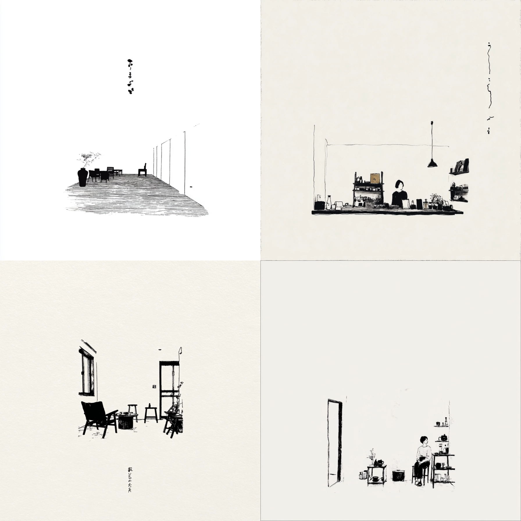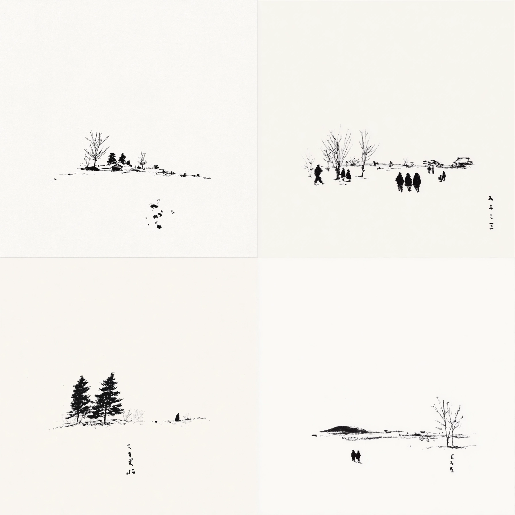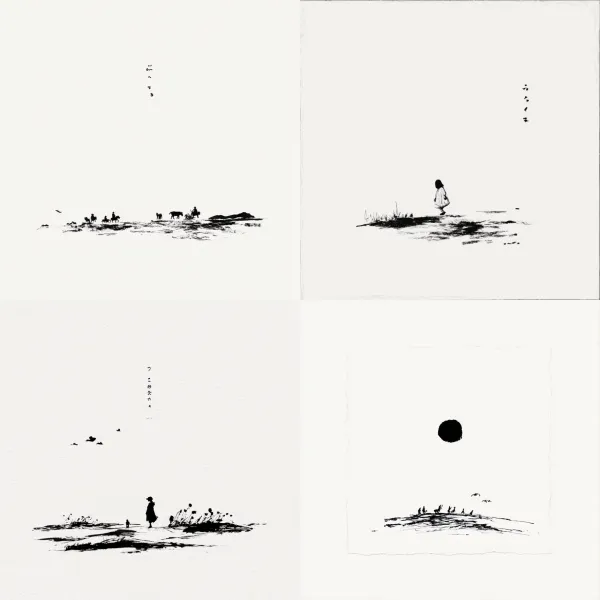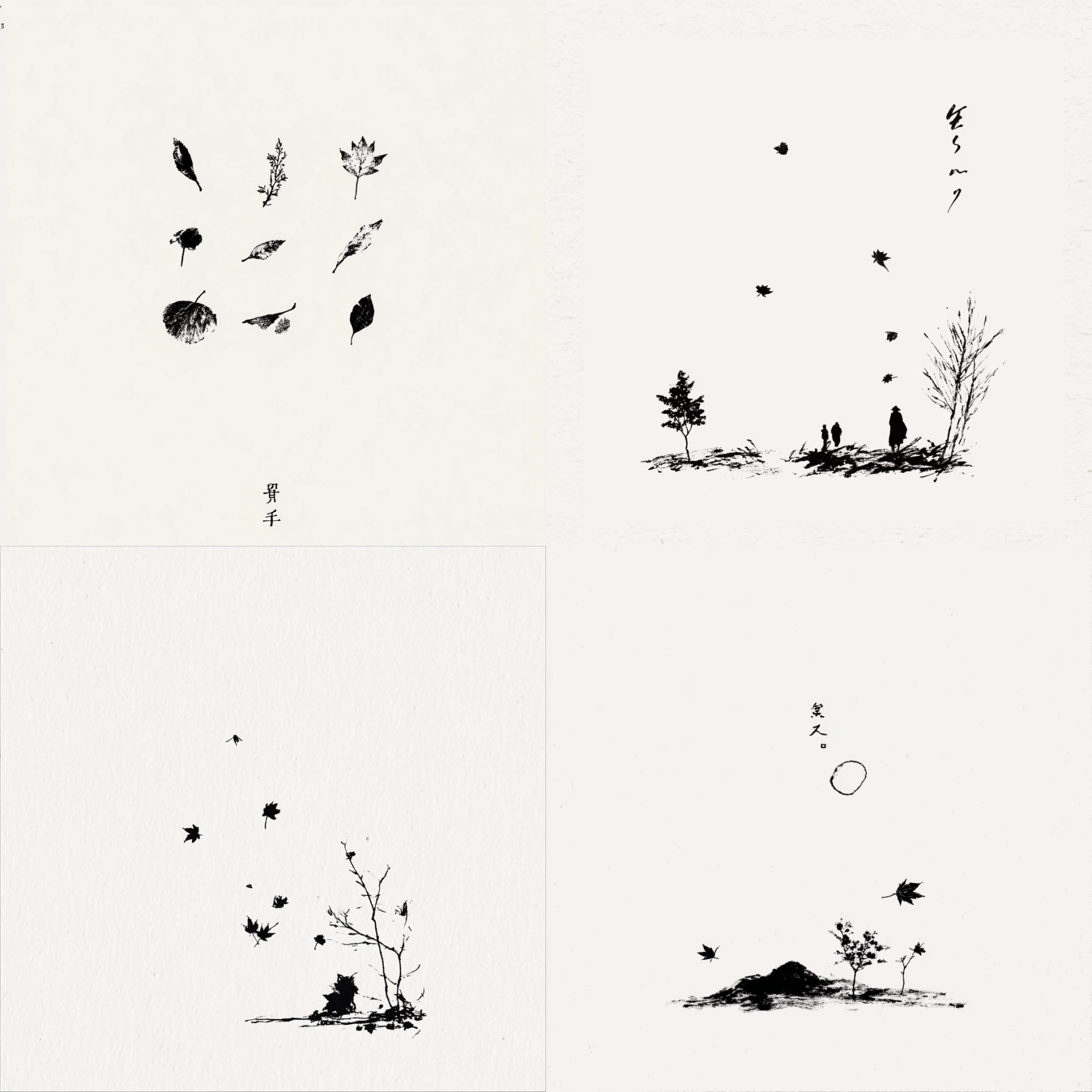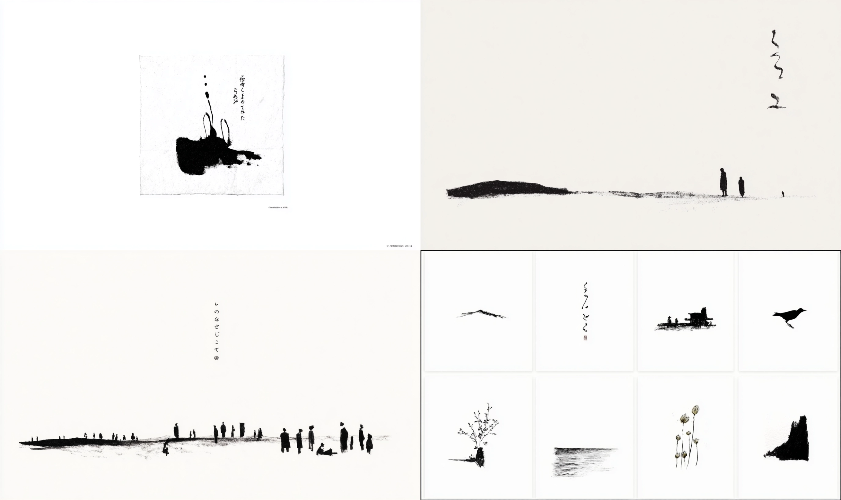 Silence Between Inks Unlock your potential with stilodex » Discipline:Plastic Arts, Guó huà. Visual style:Huā niǎo huà, Xiěyì. Application:decorative art. Stroke:calligraphic, spontaneous, discontinuous, organic. Palette:high contrast, black and white, visible canvas. Technique:india ink. Complexity:lowest. Emotion:introspection, poetry, Ma (間). Influence:zen, haiga, xieyi, sumi-e, shodō. Composition:centered, isolated, airy. Theme:contemplative.
