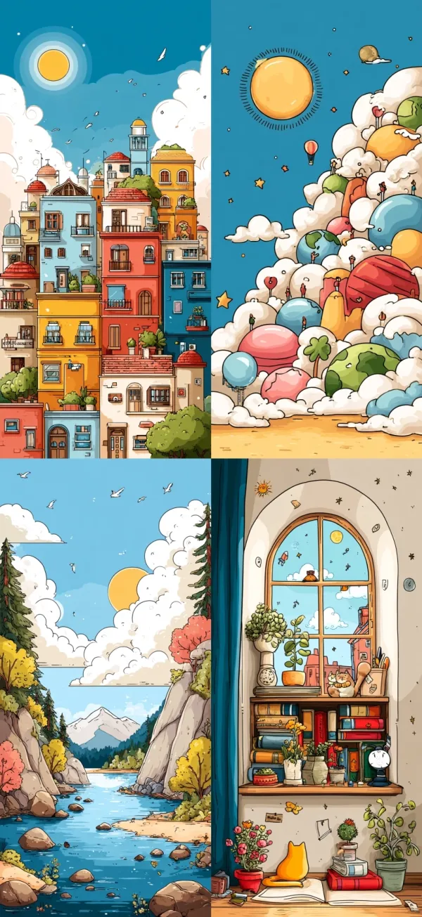 Warm Lineart Cartoon Unlock your potential with stilodex » Discipline:Illustration. Application:children's book. Stroke:regular, constant, sharp, continuous, simple, medium line. Palette:analogous. Technique:step shading, gouache, digital. Emotion:tenderness, empathy, optimism. Influence:nickelodeon, spongebob squarepants. Composition:centered, isolated.