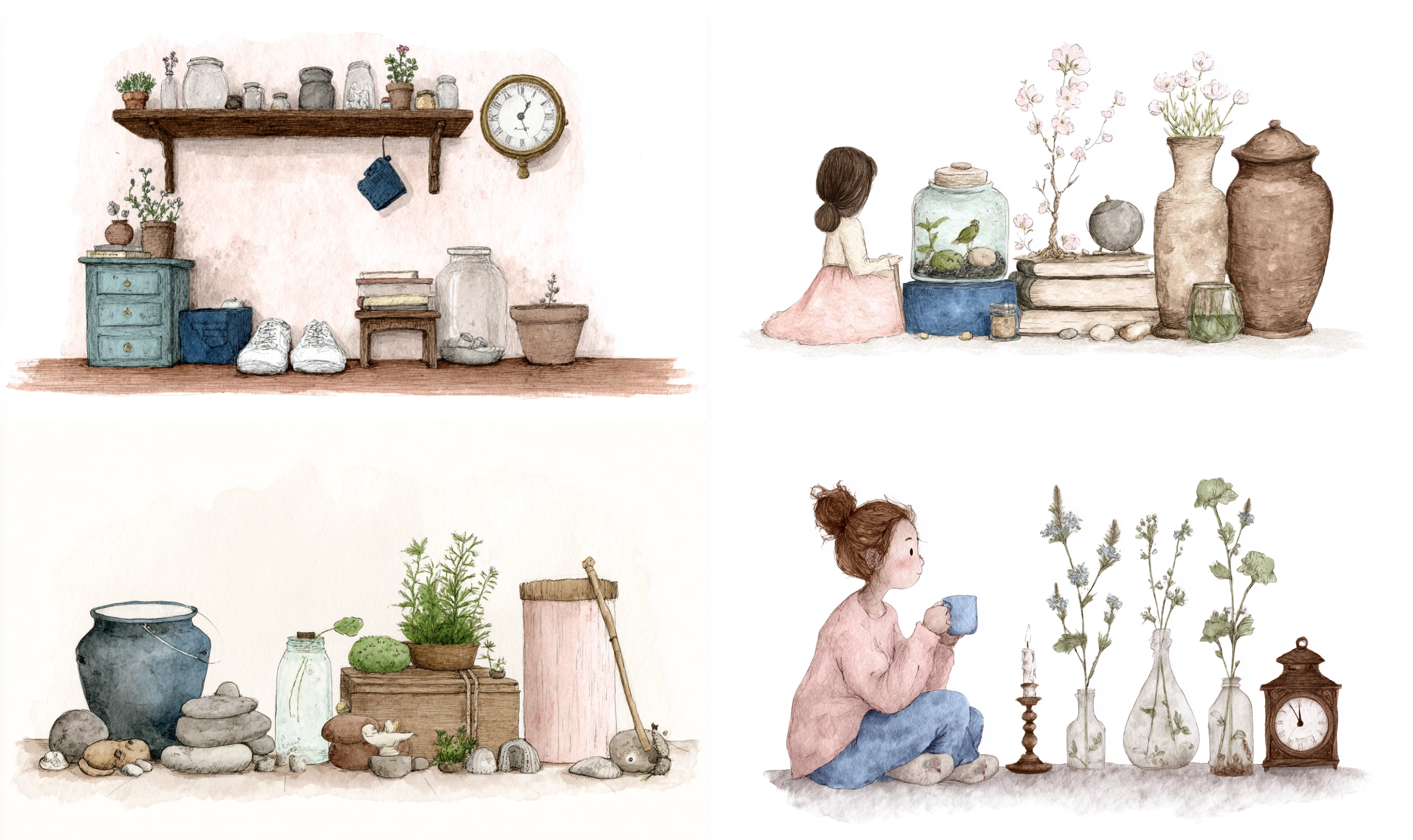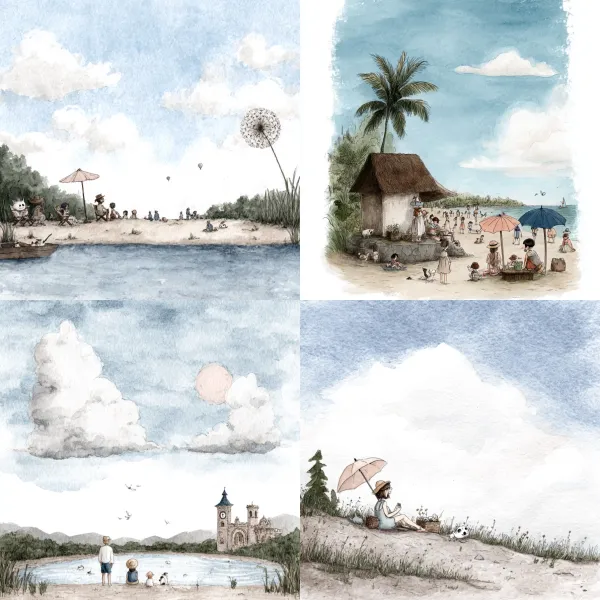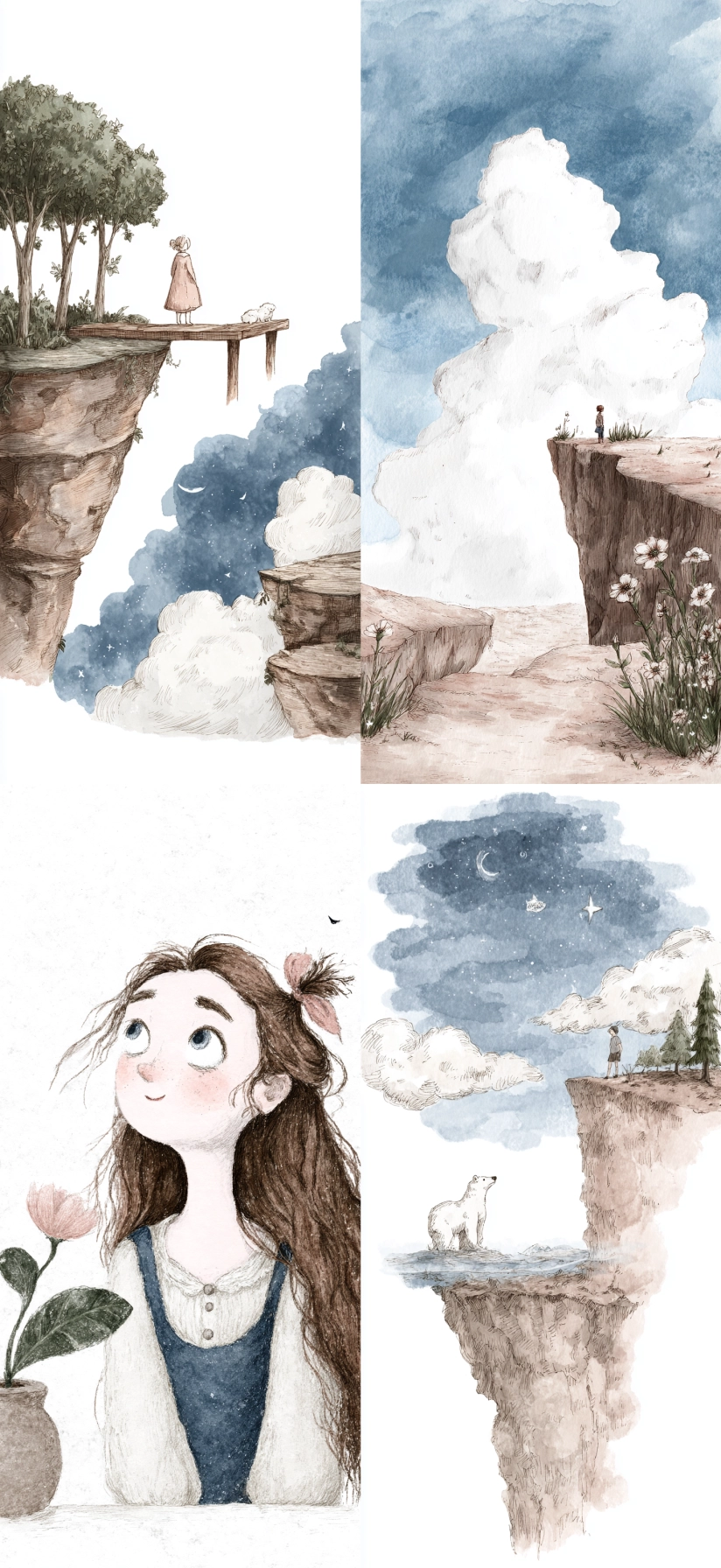 Costumbrista Tradicional Contemporáneo Desbloquea tu potencial con stilodex » Disciplina:Ilustración. Estilo visual:Ilustración Infantil. Aplicación:libro infantil. Trazo:discontinuo, contorno delgado, variable, irregular, orgánico. Paleta:texturizada, monótona, diluida, canvas visible, desaturada, limitada. Técnica:acuarela. Complejidad:baja. Composición:centrada, aislada.