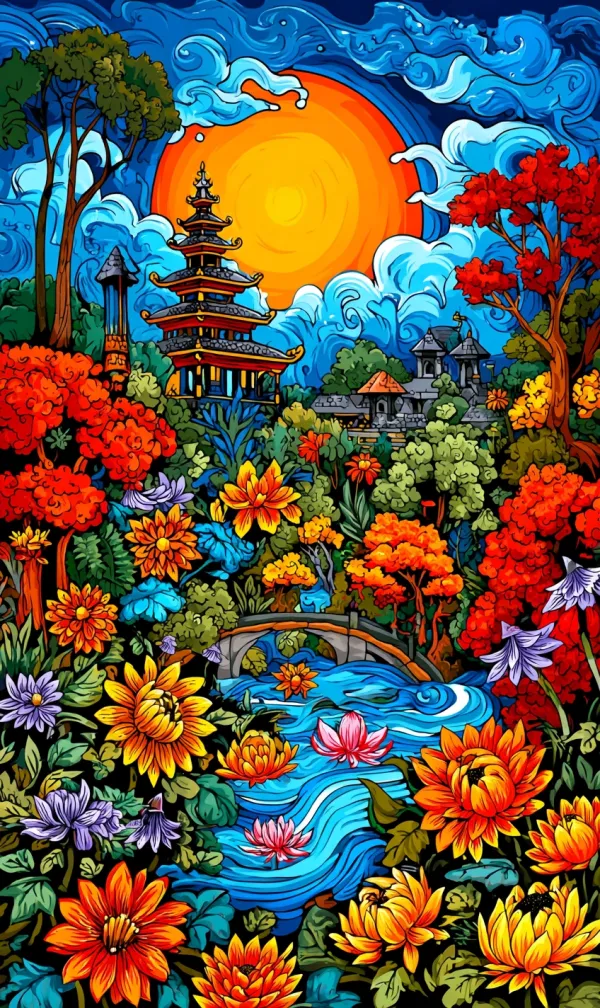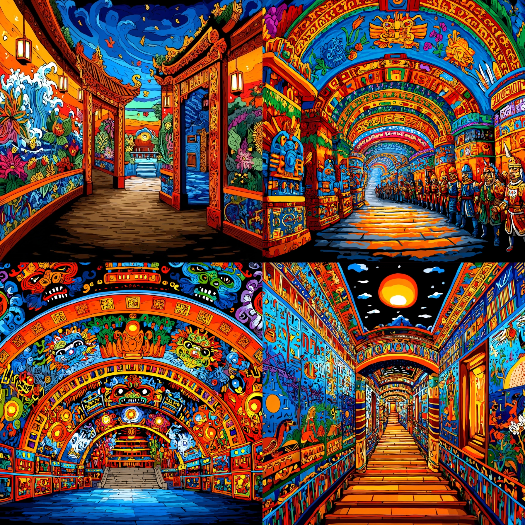 Folclore Universal Colorido Desbloquea tu potencial con stilodex » Disciplina:Ilustración. Aplicación:material promocional. Trazo:sólido, irregular, variable, nítido. Paleta:colorida, saturada, básica. Técnica:acrílico. Complejidad:alta. Emoción:festividad, turismo, vacaciones. Composición:simétrica, autocontenida, geométrica. Temática:cosmovisión, folclore.