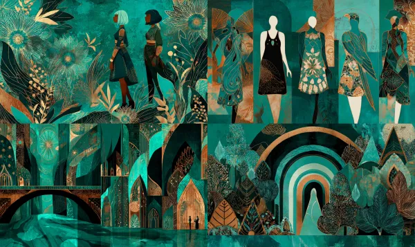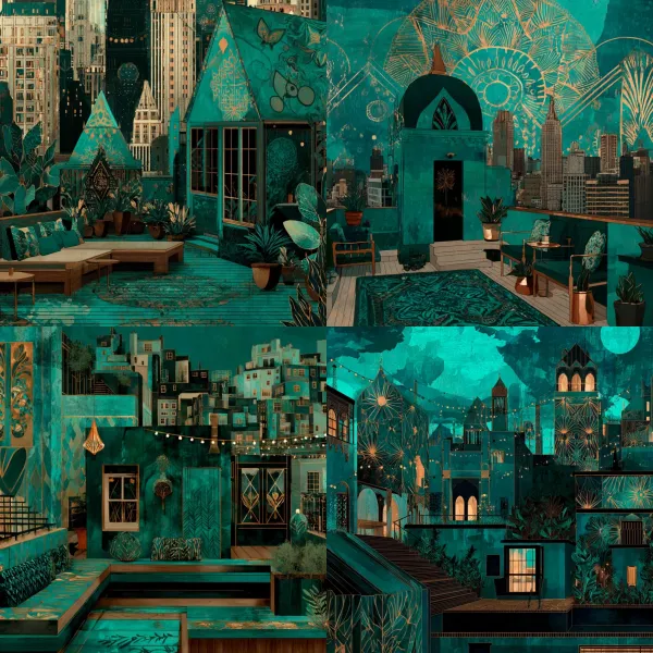 Neo Deco Turquesa Desbloquea tu potencial con stilodex » Disciplina:Interiorismo y decoración. Estilo visual:Art Déco Revival. Aplicación:artesanías, papelería, diseño de interiores, diseño decorativo, hostelería. Paleta:limitada. Técnica:pan de oro. Complejidad:alta. Emoción:exclusividad, lujo. Influencia:secesión de viena, cloisonné.