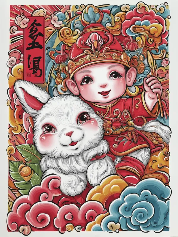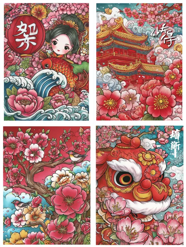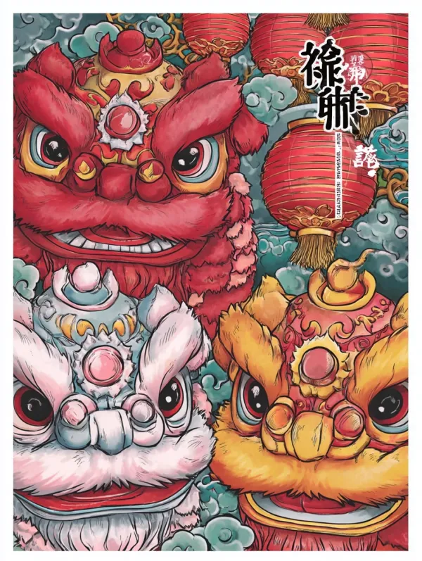 Resurrección del Nianhua Desbloquea tu potencial con stilodex » Disciplina:Ilustración. Aplicación:material promocional. Trazo:irregular, variable, múltiple, nítido. Paleta:básica, diluida, canvas visible. Técnica:gouache, xilografía. Complejidad:media. Emoción:alegría, prosperidad, júbilo, fortuna. Influencia:festividades chinas. Composición:autocontenida. Temática:año nuevo chino, danza del león, folclore.